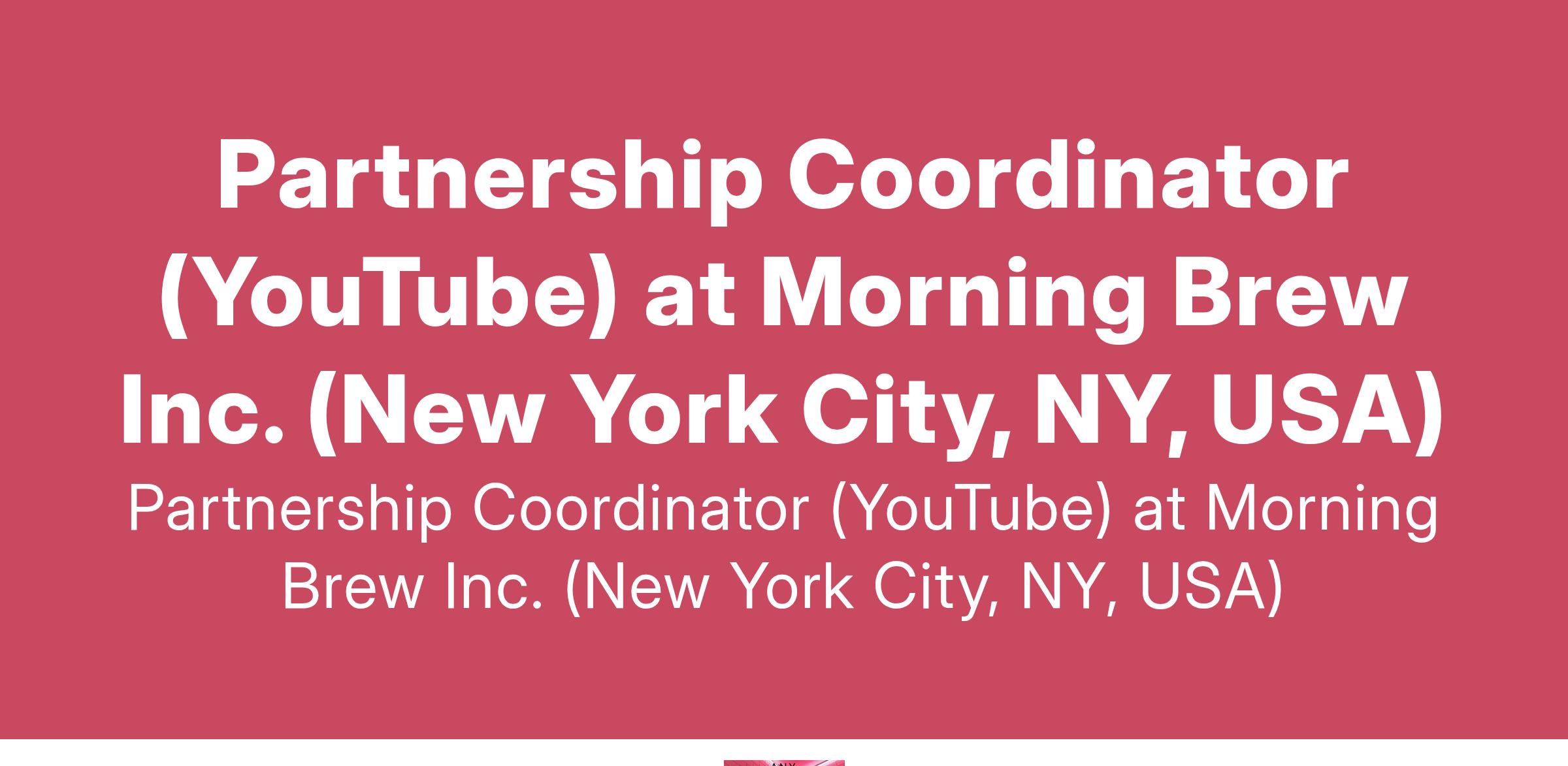 Partnership Coordinator (YouTube) at Morning Brew Inc. (New York City, NY, USA)