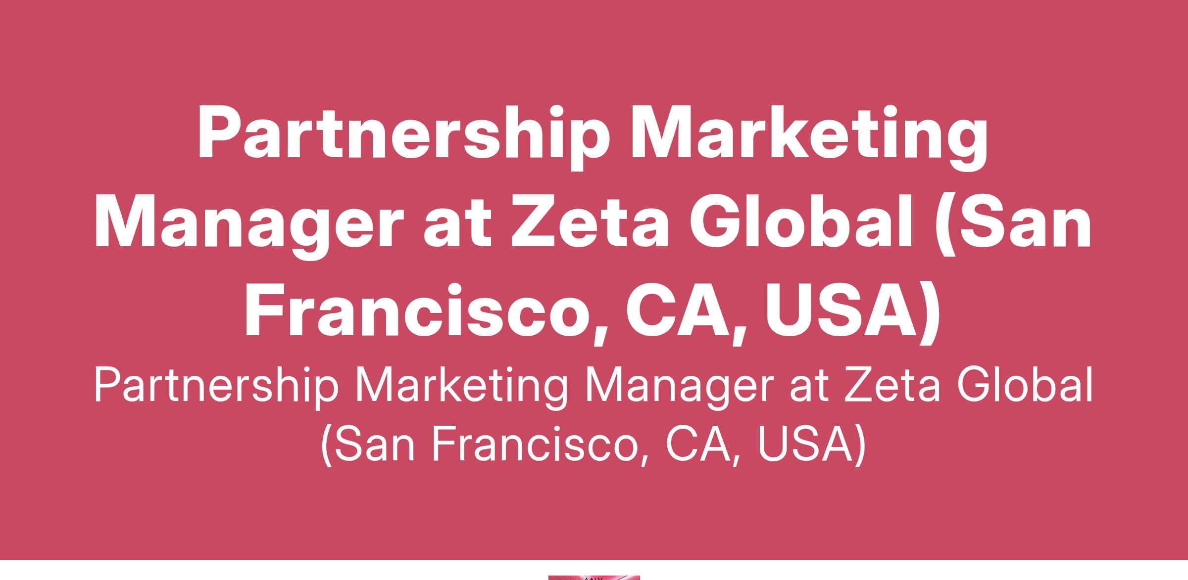 Partnership Marketing Manager at Zeta Global (San Francisco, CA, USA)