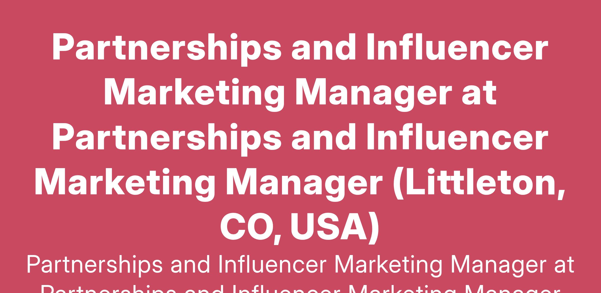 Partnerships and Influencer Marketing Manager at Partnerships and Influencer Marketing Manager (Littleton, CO, USA)