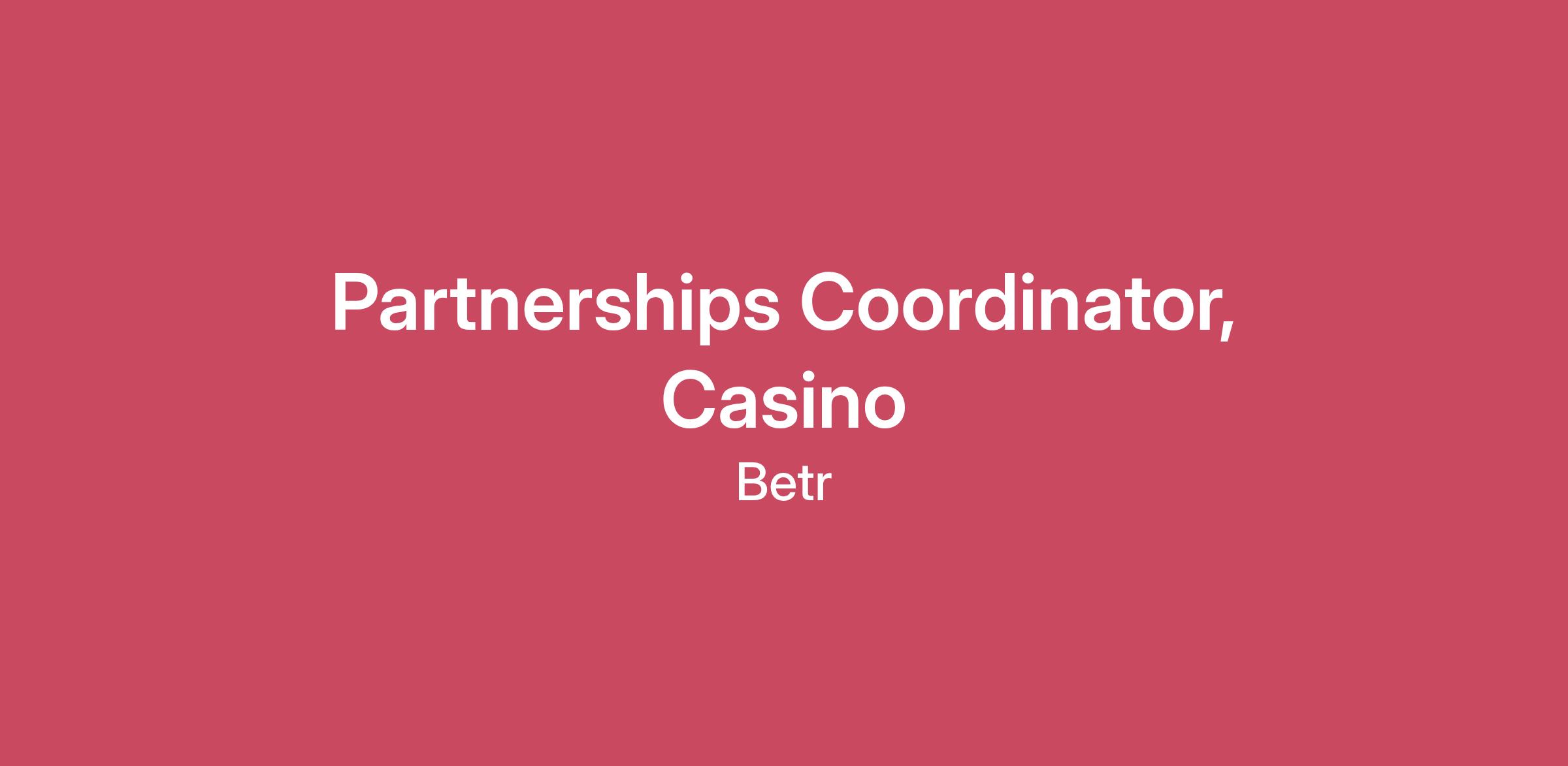 The Betr team is looking for a Partnerships Coordinator who will support the growth and management of key partnerships across our game vendors for our sweepstakes casino platform. This role is ideal for someone who is detail-oriented, proactive, and eager to learn the sweepstakes and online gaming industry.