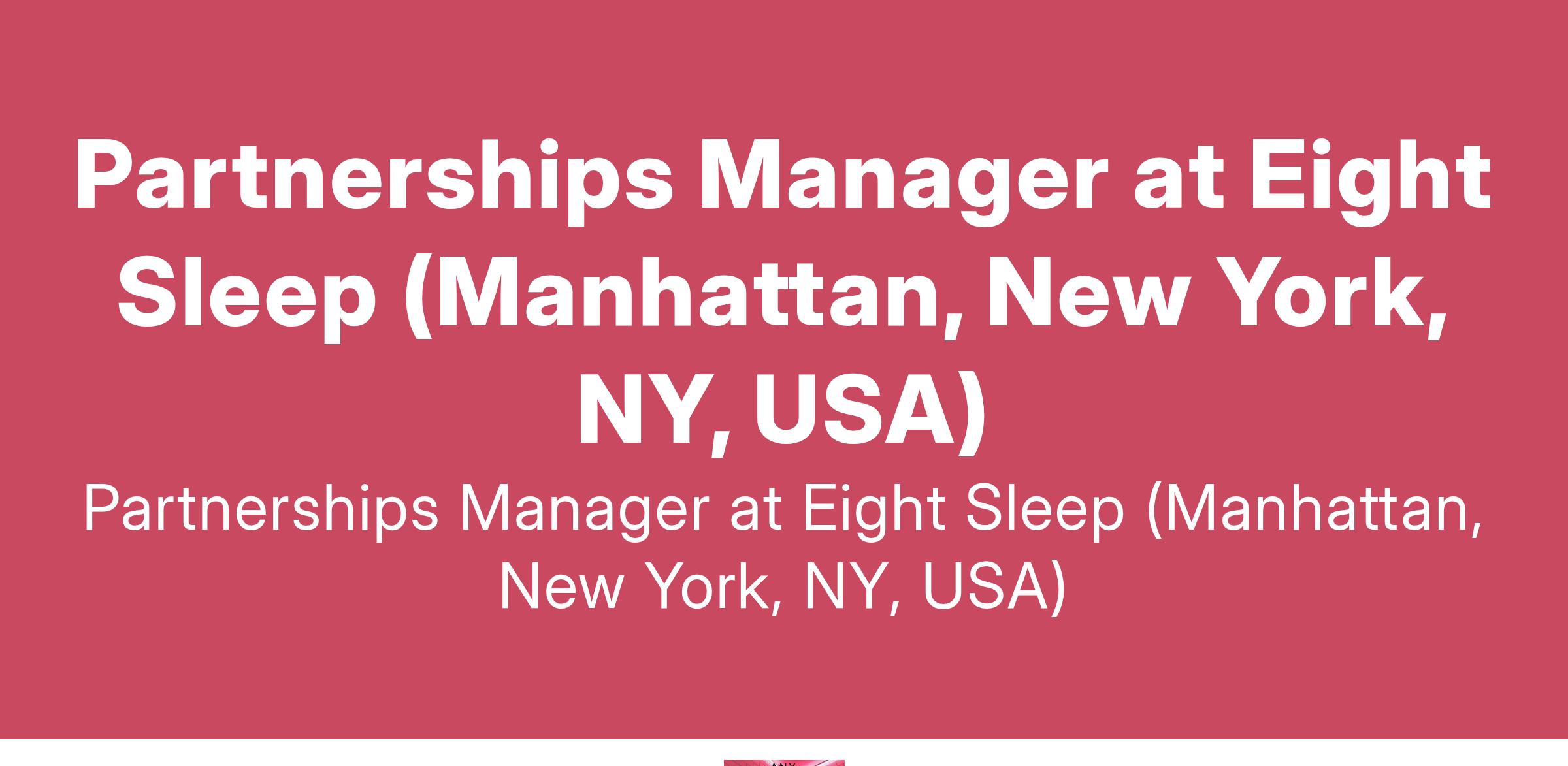 Partnerships Manager at Eight Sleep (Manhattan, New York, NY, USA)