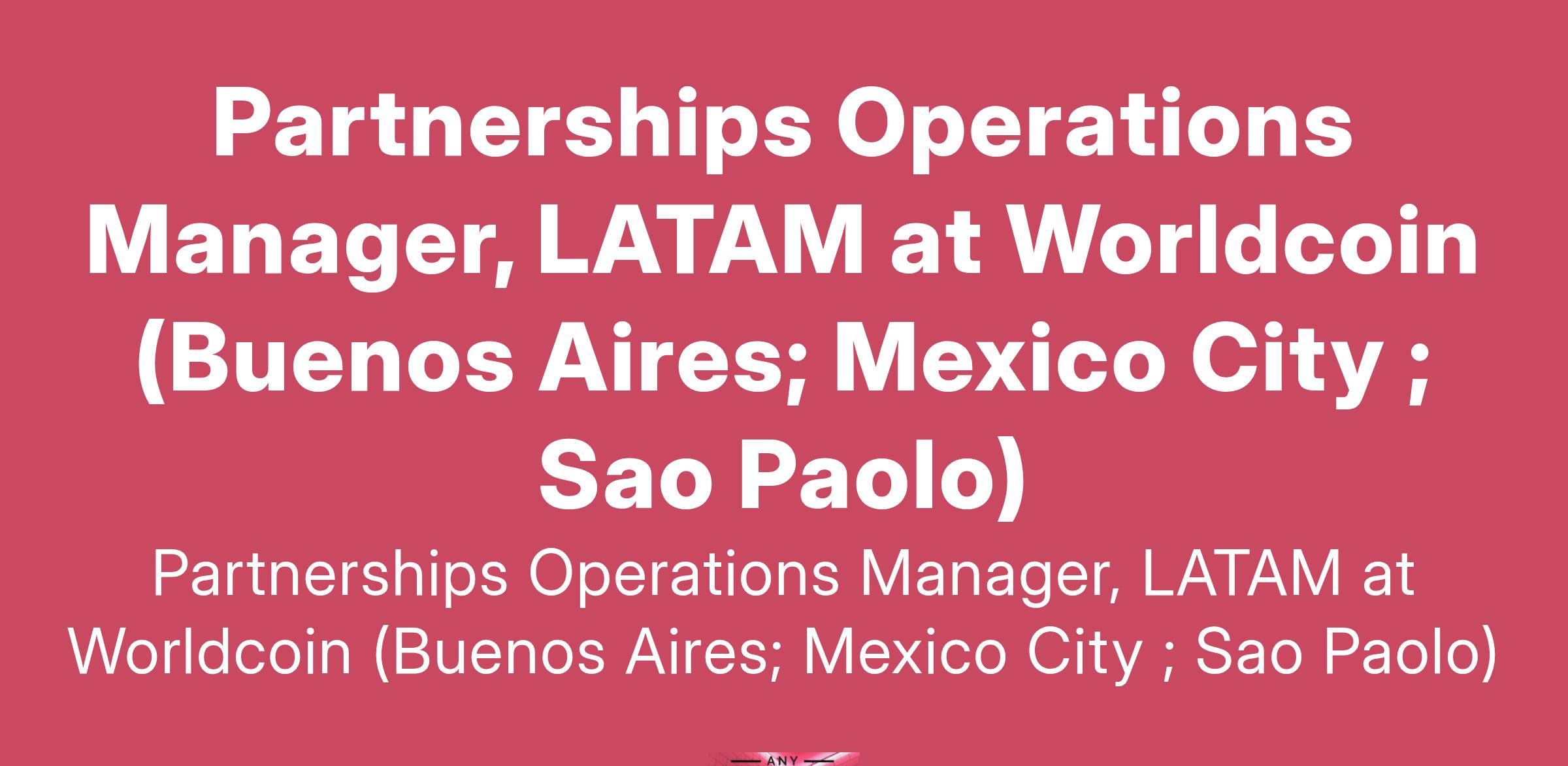 Partnerships Operations Manager, LATAM at Worldcoin (Buenos Aires; Mexico City ; Sao Paolo)