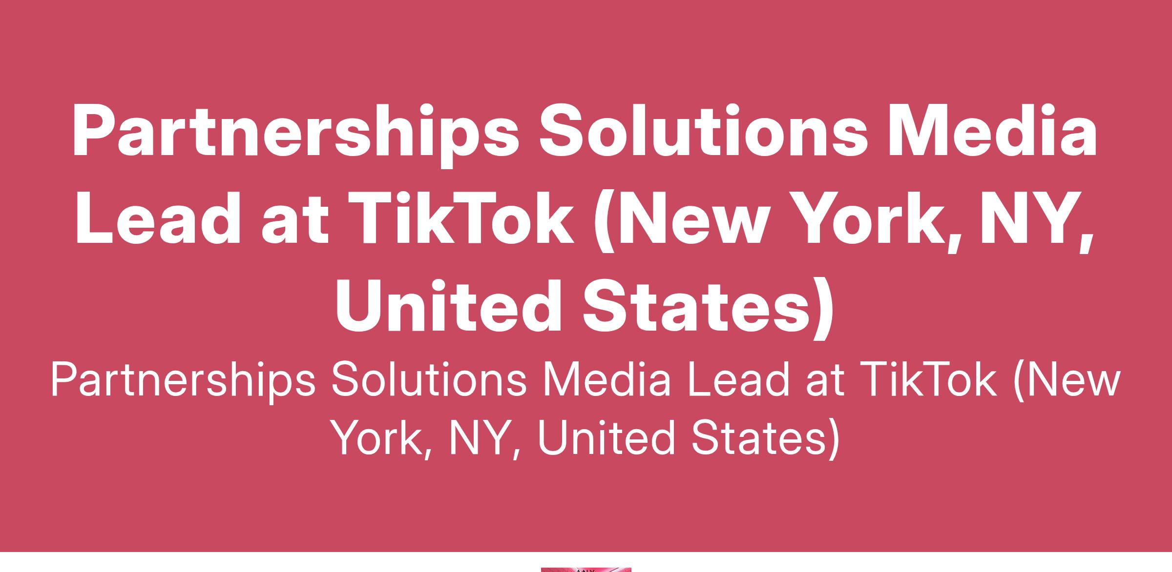 Partnerships Solutions Media Lead at TikTok (New York, NY, United States)