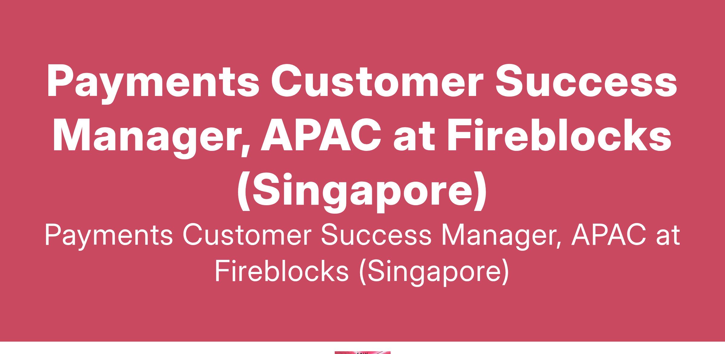 Payments Customer Success Manager, APAC at Fireblocks (Singapore)