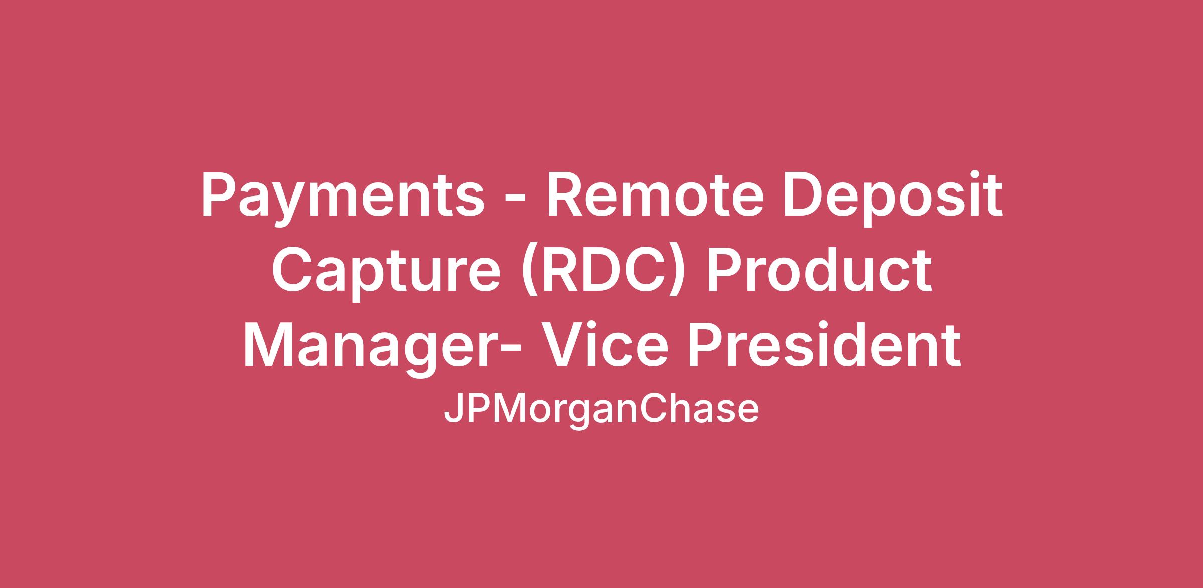 DescriptionYou enjoy shaping the future of product innovation as a core leader, driving value for customers, guiding successful launches, and exceeding expectations. Join our dynamic team and make a meaningful impact by delivering high-quality products that resonate with clients.As a Product Manager in Payments - Remote Deposit Capture (RDC), you are an integral part of the team that innovates new product offerings and leads the end-to-end product life cycle. As a core leader, you are responsible for acting as the voice of the customer and developing profitable products that provide customer value. Utilizing your deep understanding of how to get a product off the ground, you guide the successful launch of products, gather crucial feedback, and ensure top-tier client experiences. With a strong commitment to scalability, resiliency, and stability, you collaborate closely with cross-functional teams to deliver high-quality products that exceed customer expectations. Job responsibilitiesDevelops a product strategy and product vision that delivers value to customersOwns, maintains, and develops a product backlog that enables development to support the overall strategic roadmap and value propositionBuilds the framework and tracks the product's key success metrics such as cost, feature and functionality, risk posture, and reliabilityEstablish oneself as the subject‑matter expert in Remote Deposit Capture, translating market dynamics and client needs into actionable strategyDefine and communicate a clear product vision and multi‑year roadmap that delivers quantifiable customer and commercial outcomesLead discovery and market research; synthesize insights into problem statements, solution hypotheses, and prioritized requirementsDefine, monitor, and report key success metrics (e.g., adoption, reliability, risk posture, cost, feature utilization) to inform decision‑making and governanceOversee complex client onboarding and manage escalations to ensure consistent, high‑quality client experiencesCoordinate internal and external communications regarding product updates; maintain comprehensive product and system documentationLeads Agile execution in partnership with Technology and Operations, including sprint planning, backlog refinement, and release managementCultivates effective partnerships with Operations, Technology, Implementations, Sales, and Service to ensure alignment and timely deliveryRequired qualifications, capabilities, and skills5+ years of experience or equivalent expertise in product management or a relevant domain areaAdvanced knowledge of the product development life cycle, design, and data analyticsProven ability to lead product life cycle activities including discovery, ideation, strategic development, requirements definition, and value managementProven ability to document and verbally communicate concepts and ideas, including product requirements, in appropriate formats to technology partners as well as all stakeholdersExcellent communication and collaboration skillsDemonstrated prior experience working in a highly matrixed, complex organizationStrong analytical and problem‑solving capabilities; highly organized and detail‑oriented; able to operate with minimal supervisionAbility to translate business requirements into clear, testable technical specifications for engineering teamsPreferred qualifications, capabilities, and skillsDemonstrated prior experience working in a highly matrixed, complex organizationDeep understanding of receivables and cash application products, markets, and customer needsFamiliarity with emerging fintech technologies and receivables industry trends, with a track record of integrating relevant advancements into product strategyExperience with Agile methodologies and tools (e.g., Jira, Confluence)Demonstrated ability to engage directly with clients, understand their needs, and resolve complex issues efficiently