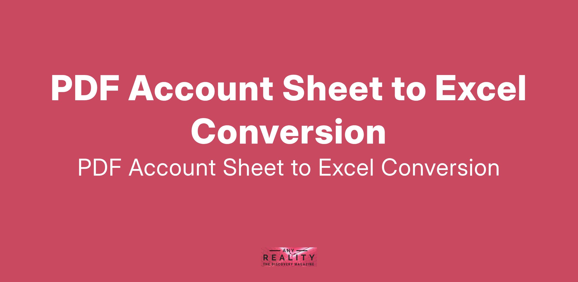 I need a PDF account sheet converted into an Excel file. The Excel file should include basic calculations such as averages. Ideal Skills: - Proficient in Excel - Experience with PDF to Excel conversion... (Budget: ₹750 - ₹1250 INR, Jobs: Data Entry, Data Processing, Excel, PDF)