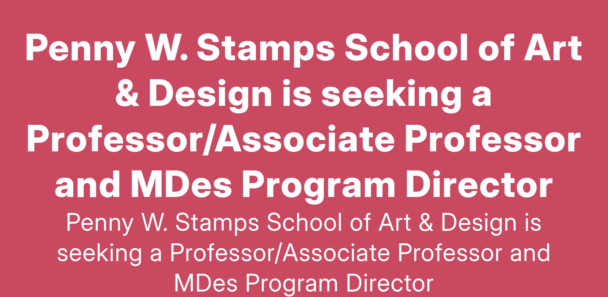 Penny W. Stamps School of Art & Design is seeking a Professor/Associate Professor and MDes Program Director