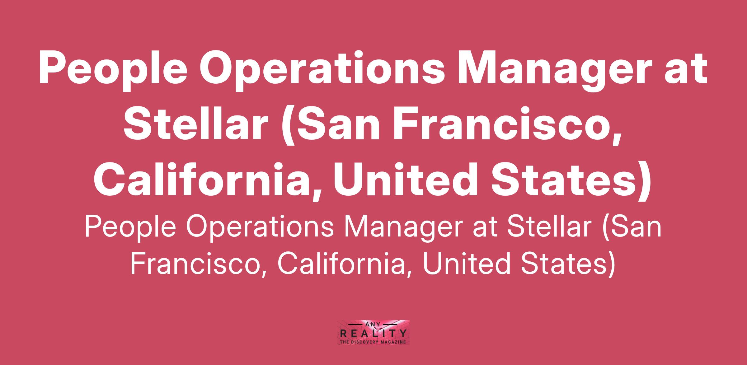 Senior People Operations Manager at Stellar (San Francisco, California, United States)