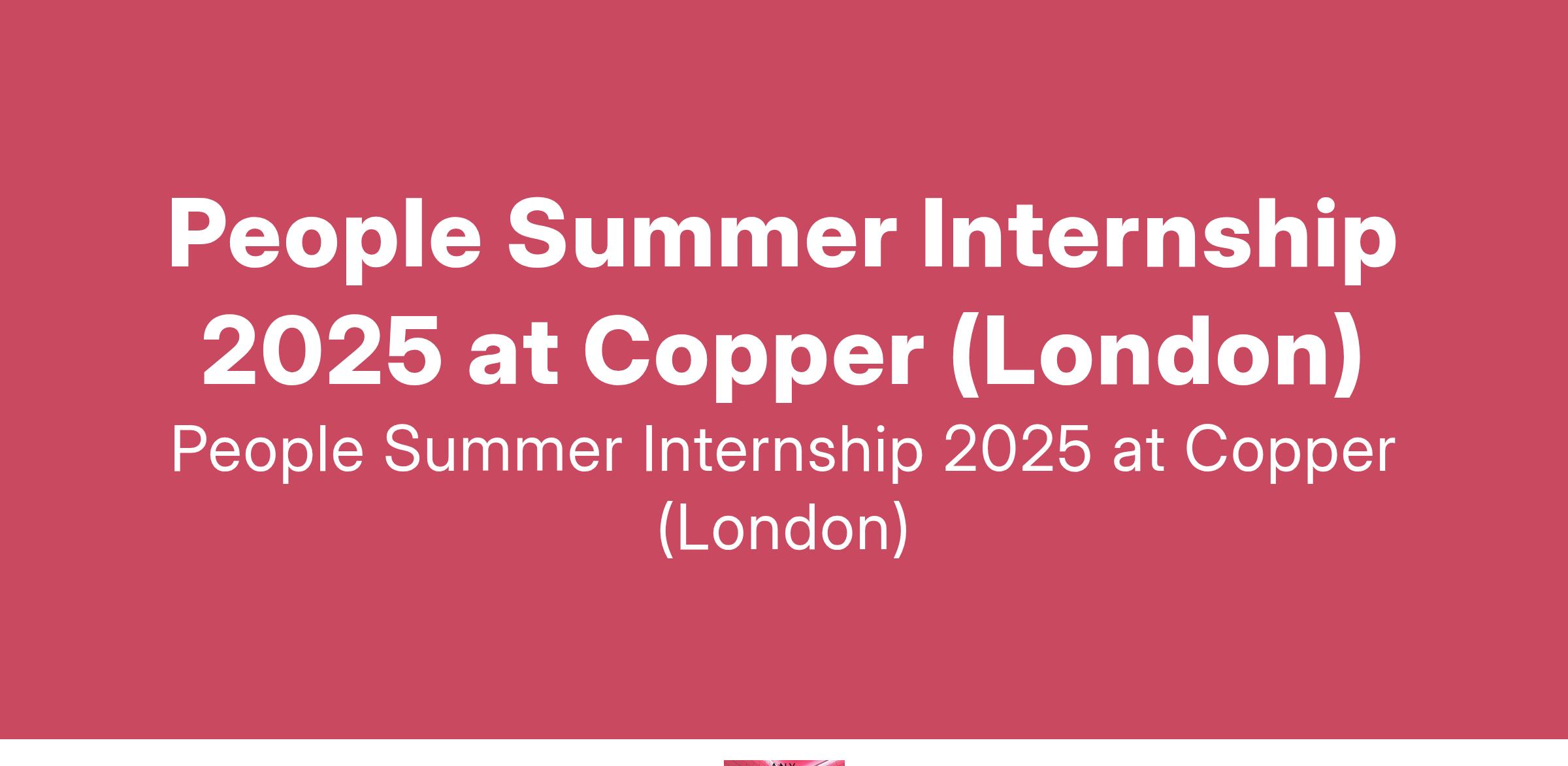 People Summer Internship 2025 at Copper (London)