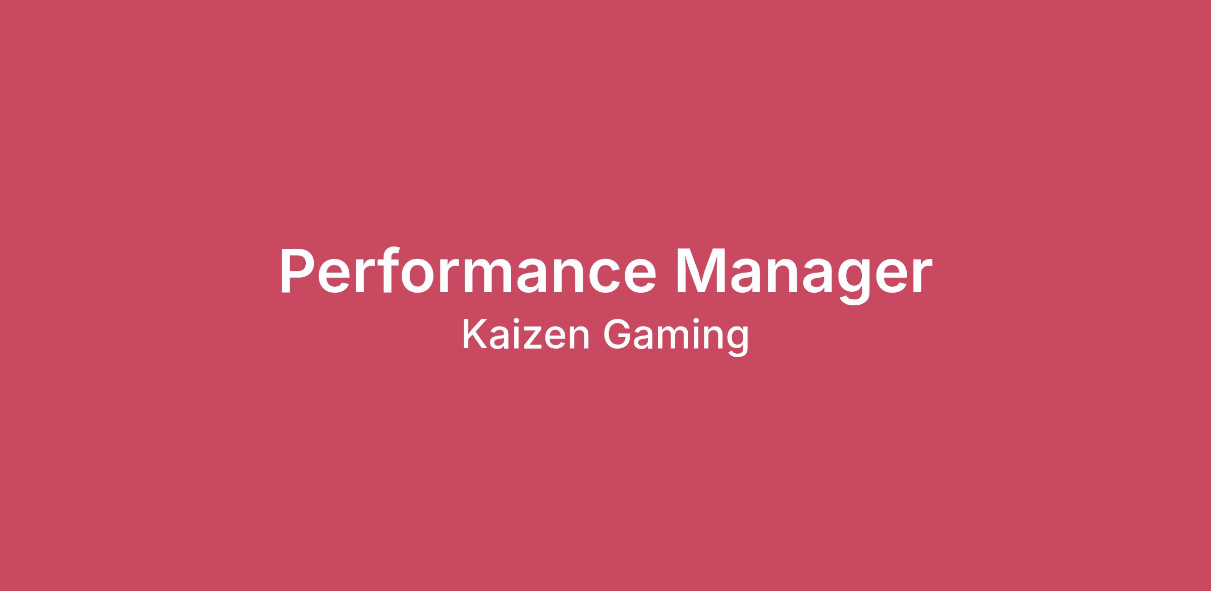 As a Performance Manager, you will: