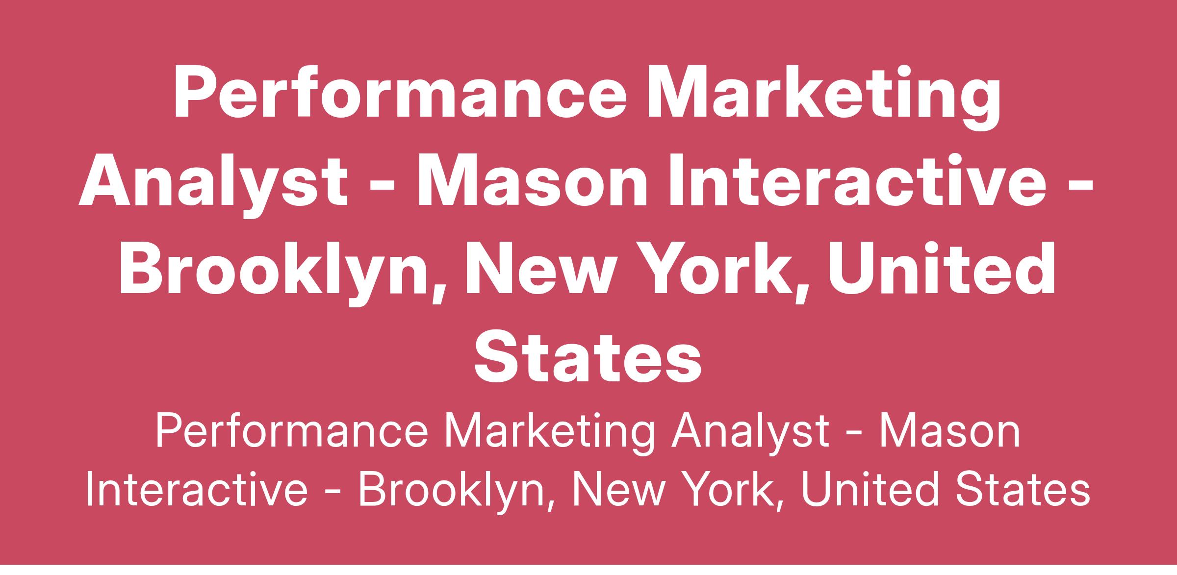 Mason Interactive is seeking a Performance Marketing Analyst to join our dynamic team. This role, ideal for ambitious individuals early in their marketing career, blends the flexibility of hybrid work with a robust package of benefits, including a competitive salary, comprehensive medical insurance, unlimited PTO, sick days, and quarterly team-building events.