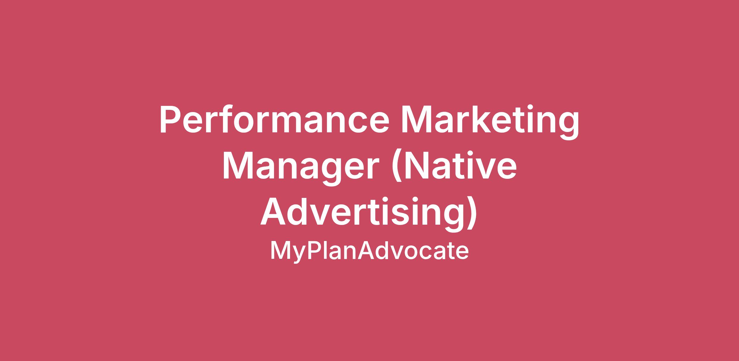 Position: Performance Marketing Manager, Native Advertising (AI-Driven Growth)Location: Remote - United StatesSalary: Starting at $100K + Performance Bonus About Healthy LabsHealthy Labs is a fast-growing digital publisher and performance marketing leader in the insurance and healthcare space. Through our portfolio of consumer-facing brands, we connect millions of Americans with trusted carriers and brokers across Medicare Advantage, Auto/Home, and Life Insurance. With a strong foundation in technology, compliance, and scale, we are building the future of consumer acquisition.Adir Ventures is an investment firm focused on technology-enabled insurance business. Some of their portfolio includes companies that are Healthy Labs (Medicare Marketing), MyPlanAdvocate (Healthcare Plans, Medicare), and Optimyl (Healthcare Plans, Small Business).The RoleWe are hiring a Native Advertising specialist. Not a generalist performance marketer.This role is for someone who understands how native ecosystems actually work — publisher dynamics, content-style creative, arbitrage economics, and the constant optimization required to scale profitable campaigns.You will own the end-to-end performance of native advertising channels across platforms such as: Taboola, Outbrain, Revcontent, MGID, and other content discovery networksIf your experience is primarily in Meta, Google, or TikTok advertising, this role is not the right fit.Native advertising operates differently — from creative structure to optimization strategy to publisher dynamics.We are specifically looking for someone who has built, scaled, and defended native channels before.What You'll OwnFull Channel OwnershipYou will fully own the native acquisition channel across our insurance marketplaces.Responsibilities include:Scaling profitable traffic across native networksManaging publisher relationships and traffic sourcesDriving improvements in RPC, CPA, margin, and lead qualityIdentifying profitable creative angles and scaling winnersManaging large-scale testing frameworks across headlines, images, advertorials, and landing pagesThis is a business ownership role, not just campaign management.Native-Specific OptimizationNative advertising requires constant iteration across:Creative anglesAdvertorial structuresLanding page frameworksAudience targetingPublisher performanceBid strategyTraffic segmentationYou will continuously analyze performance data to identify where margin is won or lost and implement improvements.AI-Enabled AnalysisHealthy Labs is an AI-forward organization.We expect our operators to leverage AI tools to:Accelerate performance analysisGenerate creative testing frameworksIdentify emerging patterns in campaign dataBuild automation that increases operational leverageAI should expand the speed and depth of your thinking, not replace it. About YouYou are a native advertising operator, not a general digital marketer.Ideal candidates have:3–7 years running native advertising campaignsDeep hands-on experience with Taboola, Outbrain, Revcontent, or MGIDA track record of scaling campaigns in lead generation, insurance, finance, or other high-value verticalsStrong analytical ability to diagnose performance changes quicklyA systems mindset — you build repeatable processes that scaleCuriosity and a habit of questioning assumptionsComfort using AI tools to accelerate research, analysis, and executionThis Role is Not a Fit IfYour experience is primarily Meta, Google, TikTok, or paid socialYou have not managed native advertising platforms directlyYou prefer clearly scoped campaign tasks instead of owning channel outcomesYou rely on platform automation rather than deep performance analysisWhat We OfferCompetitive salary + performance-based bonusHealth, dental, and vision benefits401(k) with company matchFully Remote Role – flexible location with virtual team collaborationEntrepreneurial culture with direct impact on company growthOpportunities to lead and scale campaigns in multi-million-dollar verticals To comply with federal law, we utilize the E-Verify system to verify the employment eligibility of all new hires. For more information about E-Verify, please visit the U.S. Citizenship and Immigration Services (USCIS) website: E-Verify USCIS website: e-verify.gov. Healthy Labs is an equal-opportunity employer. Healthy Labs prohibits discrimination and harassment of any type and affords equal employment opportunities to employees and applicants without regard to race, color, religion, sex, sexual orientation, gender identity or expression, pregnancy, age, national origin, disability status, genetic information, protected veteran status, or any other characteristic protected by law. Healthy Labs conforms to the spirit as well as to the letter of all applicable laws and regulations.