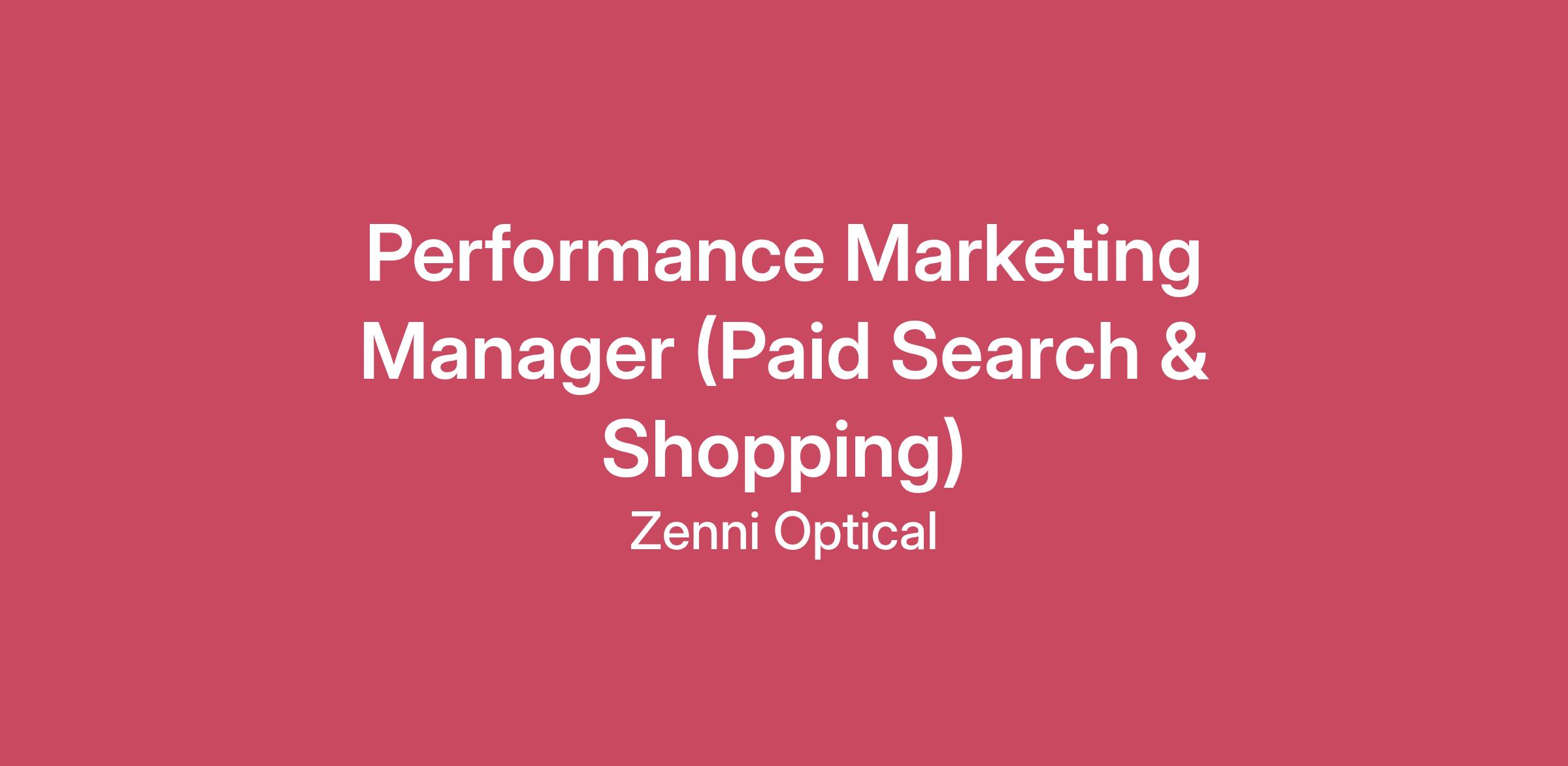 Who We Are Born from a mission to make prescription eyewear affordable and accessible to everyone, Zenni Optical has been changing the way people see the world since 2003. With complete prescription pairs for adults and kids starting at under $10, we’ve grown into a global brand with over 51 million pairs of glasses sold — and counting! Based in the San Francisco Bay Area, we're proud to be the Official Eyewear of the San Francisco 49ers, Boston Celtics, Monster Jam, Ghost Gaming, TSM, Major League Pickleball and more. We've also partnered with tastemakers and designers like Chase Stokes, Jrue Holiday, and George and Claire Kittle to bring our brand to life in bold, meaningful ways. Innovation is at the heart of everything we do at Zenni — from our revolutionary EyeQLenz™ with Zenni ID Guard™ glasses to our cutting-edge VR Vision Screener, we're constantly exploring new ways to improve vision and enhance lives. For more information, please visit zenni.com/press. Candidate safety is important to us. Please note that all official communication will only be sent from @zennioptical.com addresses.Position Summary We are looking for a Performance Marketing Manager with a passion for paid search and shopping to join our growing team. You will bring best-in-class strategic and executional knowledge of paid search and shopping channels to contribute to the growth of Zenni. You will directly manage paid search, shopping and video campaigns, making daily optimizations and guiding strategy for owned campaigns. You will work on an in-house team alongside Paid Social, Paid Search / Shopping and Display, Video experts to drive revenue growth for Zenni. Responsibilities: Partner with search team leadership to develop, executive and optimize campaigns within Google Ads and Bing Ads (tactics include but not limited to Search, Shopping, Performance Max, Youtube, DemandGen) Day-to-day optimization, analysis and support of Search team owned channels Monitor and analyze trends of core KPIs, with primary focus on spend, ROAS (return on ad spend), revenue, and new customer acquisition cost (CAC), as well as secondary KPIs including impressions, clicks, CTR (click-through rate), CPC (cost per click), and CVR (conversion rate) Monitor competitor activities utilizing third-party tools Report on and communicate performance results to internal stakeholders KPI forecasting Budget forecasting Collaborate with other media team members to ensure alignment of brand messaging, align creative and copy testing and business priorities Basic Qualifications: 3+ years of paid search/shopping experience working primarily with eComm brands Proven track record of driving company growth through paid search Experience managing 1MM+ monthly paid media budgets Experience with end-to-end account management including but not limited to: campaign building, keyword selection, feed optimization, ad copy and creative testing, analysis, optimization and reporting Experience working with competitor monitoring tools Strong data analytics and strategy background Ability to support Pacific Time Zone business hours Preferred Qualifications: Proficiency in excel, Google Ads editor, Bing Ads Editor. Experience with SA360 preferred but not required Agency experience preferred U.S. Perks & Benefits: Annual Bonus Program Healthcare: 100% medical, dental, and vision coverage for employees (50% for dependents) 401k with 4% employer match Generous PTO in addition to our Week of Zen - the time between Christmas and New Year’s to relax and recuperate Fully Paid Parental Leave - 16 weeks for birthing and non-birthing parents Tech Stipend - $50 USD per payroll towards tech & cell phone expenses Annual Zenni Gift Card - to use towards our products! Compensation In addition to other forms of compensation, such as perks and benefits, the estimated salary range for this role is $77,300 - $116,000 for candidates outside of California. For California-based candidates, the estimated salary range is $85,030 - $127,600. The final offer will be determined based on permissible, non-discriminatory factors such as skill set, experience, geographical location, market conditions, and other organizational needs. The Company reserves the right to change, modify, or revisit the salary range for various reasons including business needs. (U.S. ONLY) Please Note: We are registered in some, but not all states. If you are located in one of the following states full time, we welcome you to apply: Arizona, California, Colorado, Connecticut, District of Columbia, Florida, Georgia, Illinois, Iowa, Kansas, Massachusetts, Michigan, Minnesota, Mississippi, Missouri, Nevada, New Jersey, New York, Ohio, Oregon, Texas, Utah, Virginia.#LI-REMOTEWe look forward to hearing from you! We strive to build a diverse team of individuals with a broad range of experience and perspectives. We encourage you to apply even if you don’t feel you meet all the qualifications. Zenni Optical is an equal opportunity workplace and considers applications without regard to race, color, national origin, gender identity, sexual orientation, age, citizenship, marital status, disability, or Veteran status. We also consider qualified applicants regardless of criminal histories, consistent with legal requirements.