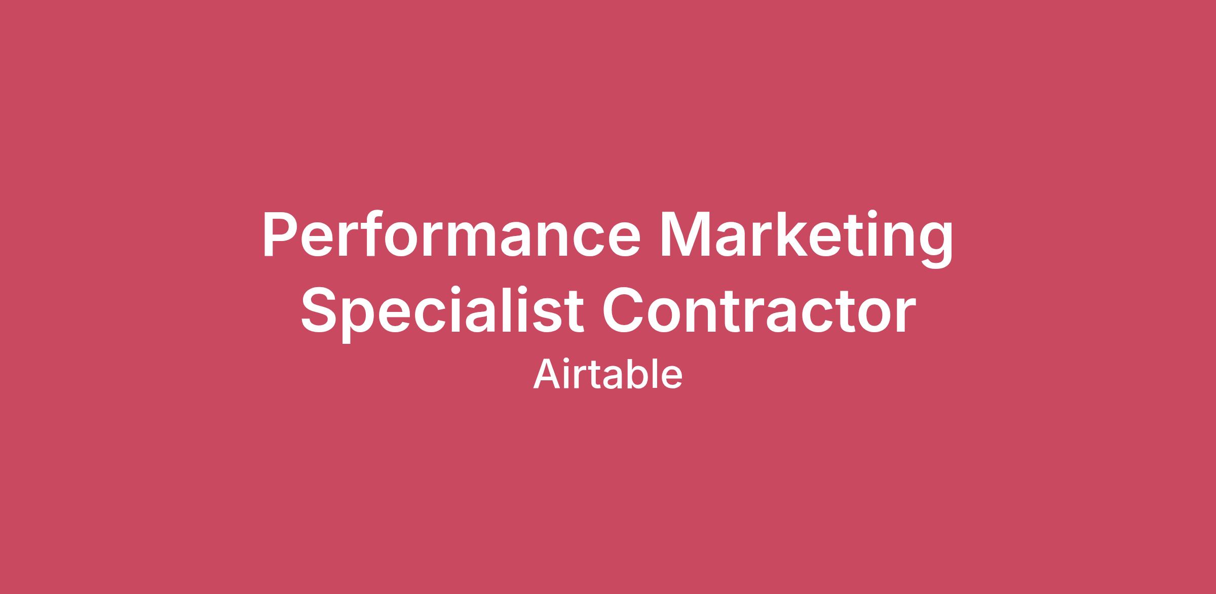 Airtable is the no-code app platform that empowers people closest to the work to accelerate their most critical business processes. More than 500,000 organizations, including 80% of the Fortune 100, rely on Airtable to transform how work gets done.We’re looking for a hands-on Performance Marketing Specialist to own the day-to-day execution across paid social channels. In this role, you’ll be stepping into an active campaign environment, and be expected to hit the ground running with minimal ramp time to help scale our high-growth performance engine. You will work closely with Airtable’s Performance Marketing team and cross-functional partners (lifecycle marketing, marketing operations, and product marketing) to ensure campaigns run efficiently and are fully tracked end-to-end. We’re looking for folks who know what good looks like but who are flexible, resourceful, and self-driven, and excited to join us on our acquisition motion. What you'll do Own end-to-end execution and performance of paid social campaigns (Meta, LinkedIn), including in-platform management of targeting, bidding, and creative trafficking Execute structured experiments and clearly document learnings to drive continuous improvement in paid campaigns Deliver operational excellence in the form of precise budget management and pacing Regularly analyze performance campaign results and make ongoing recommendations for decisions across spend, targeting, bidding, creative, and landing pages. Support paid video and other emerging channels (e.g., newsletters, TikTok) as needed Serve as a liaison between media performance and content and creative, flagging what’s working and what needs improvement Who you are Experienced performance marketer, with expertise in paid social: You have 4+ years of hands-on paid media experience across multiple channels. You’ve built and managed campaigns in-platform yourself, not just overseen them. B2B experience: You have experience working in sales-led and/or product-led organizations previously. Detail-oriented and organized: You can manage multiple campaigns and workstreams without things falling through the cracks. Strong communicator: You proactively share updates, flag issues early, and build strong relationships with immediate team and cross-functional partners. Analytical and hypothesis-driven: You are comfortable navigating across a swath of metrics and extracting the “aha” insights. You approach optimizations with intention and follow through by tracking impact. Builder-mindset: You leverage AI to unlock efficiencies in your work and thrive in ambiguous environments. What we offer Duration: 6-12 month contract Start Date: ASAP Work Schedule: 40 hr / week Location: Remote (United States) Airtable is an equal opportunity employer. We embrace diversity and strive to create a workplace where everyone has an equal opportunity to thrive. We welcome people of different backgrounds, experiences, abilities, and perspectives. All qualified applicants will receive consideration for employment without regard to race, color, religion, sex, sexual orientation, gender identity, national origin, disability, protected veteran status or any characteristic protected by applicable federal and state laws, regulations and ordinances. Learn more about your EEO rights as an applicant. VEVRAA-Federal Contractor If you have a medical condition, disability, or religious belief/practice which inhibits your ability to participate in any part of the application or interview process, please complete our Accommodations Request Form and let us know how we may assist you. Airtable is committed to participating in the interactive process and providing reasonable accommodations to qualified applicants. #LI-RemoteCompensation awarded to successful candidates will vary based on their work location, relevant skills and experience.For all work locations including remote, the hourly rate for this role is:$60—$75 USDPlease see our Privacy Notice for details regarding Airtable’s collection and use of personal data relating to the application and recruitment process by clicking here.For applicants that live in or have a link to Australia, please see this Privacy Collection Statement for details regarding Airtable's collection and use of personal data relating to the application and recruitment process. Stay Safe from Job ScamsAll official Airtable communication will come from an @airtable.com email address. We will never ask you to share sensitive information or purchase equipment during the hiring process. If in doubt, contact us at hr@airtable.com. Learn more about avoiding job scams here.