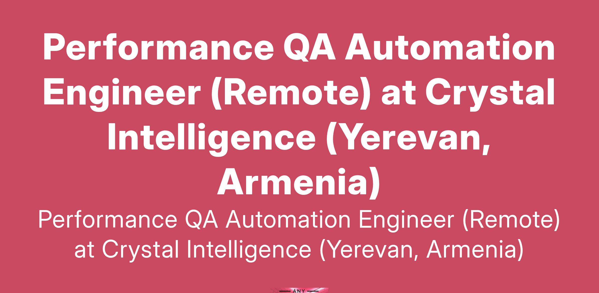 Performance QA Automation Engineer (Remote) at Crystal Intelligence (Yerevan, Armenia)