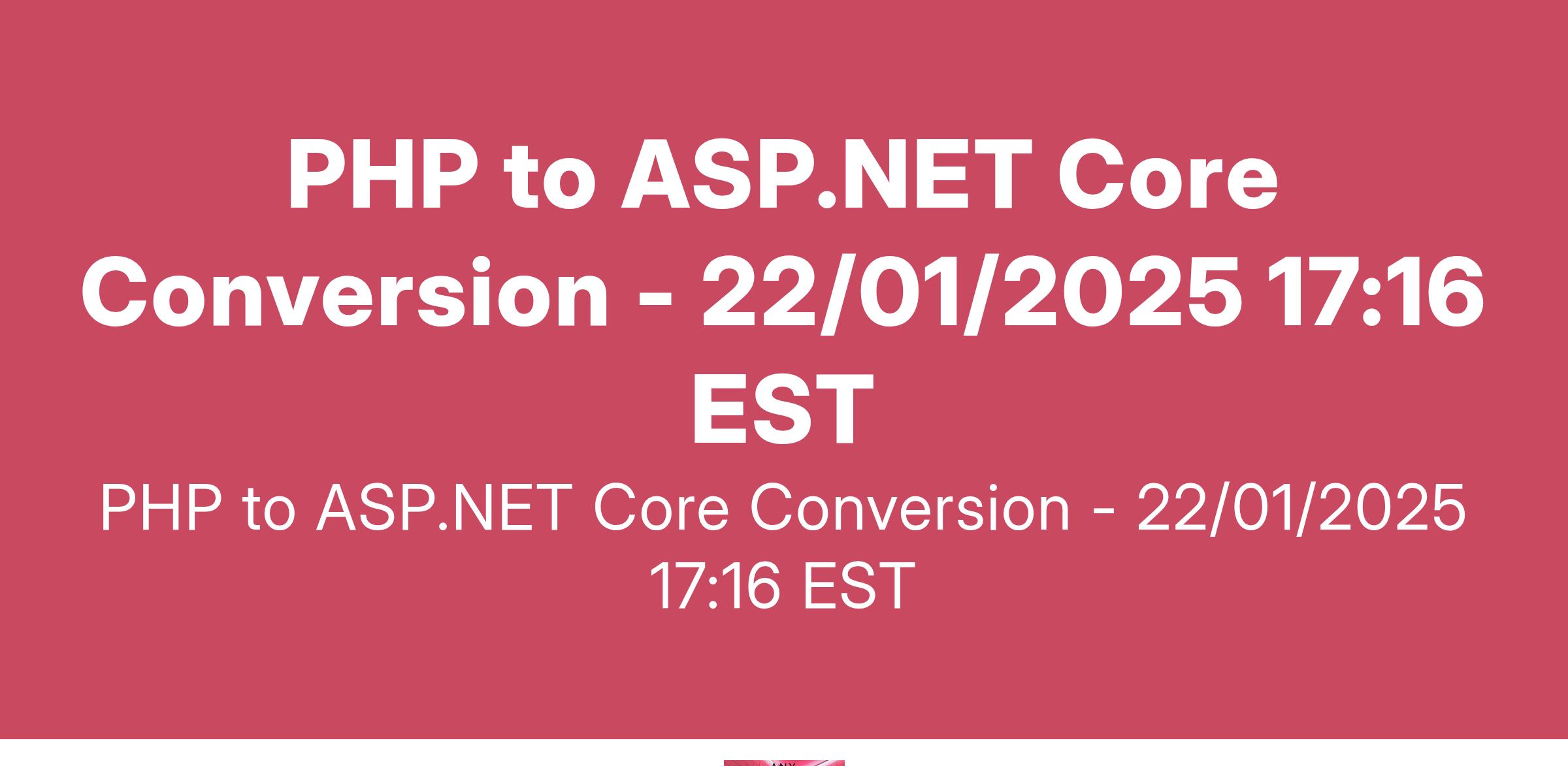 I am seeking a proficient developer to convert my existing PHP website to ASP.NET Core. The project requirements are as follows: - Critical Feature Maintenance: Ensure all essential features, particularly database interactions, are preserved during the conversion... (Budget: $250 - $750 USD, Jobs: HTML, MySQL, PHP, SQL, Website Design)