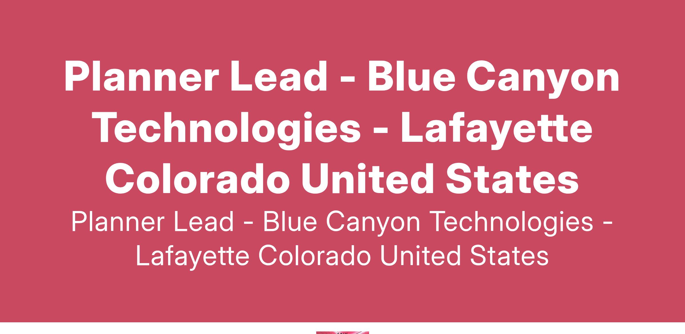 Position Purpose: The Planner Lead will take a leadership position within the Planning Group for all planners working at the BCT Lafayette/Crescent facility. This will include planners working on both component product lines and miniSat programs. This role will involve cross-functional work with various teams including manufacturing engineering, supply chain, integration and test, mission assurance, quality and finance. They will take a leadership role within planning for continuous improvement opportunities, making improvements in processes and operations planning and working with cross functional groups to make positive impacts in support of BCT goals and objectives. This role will operate in a fast-paced, demanding, and rewarding environment with high expectations for individual contribution and team performance.