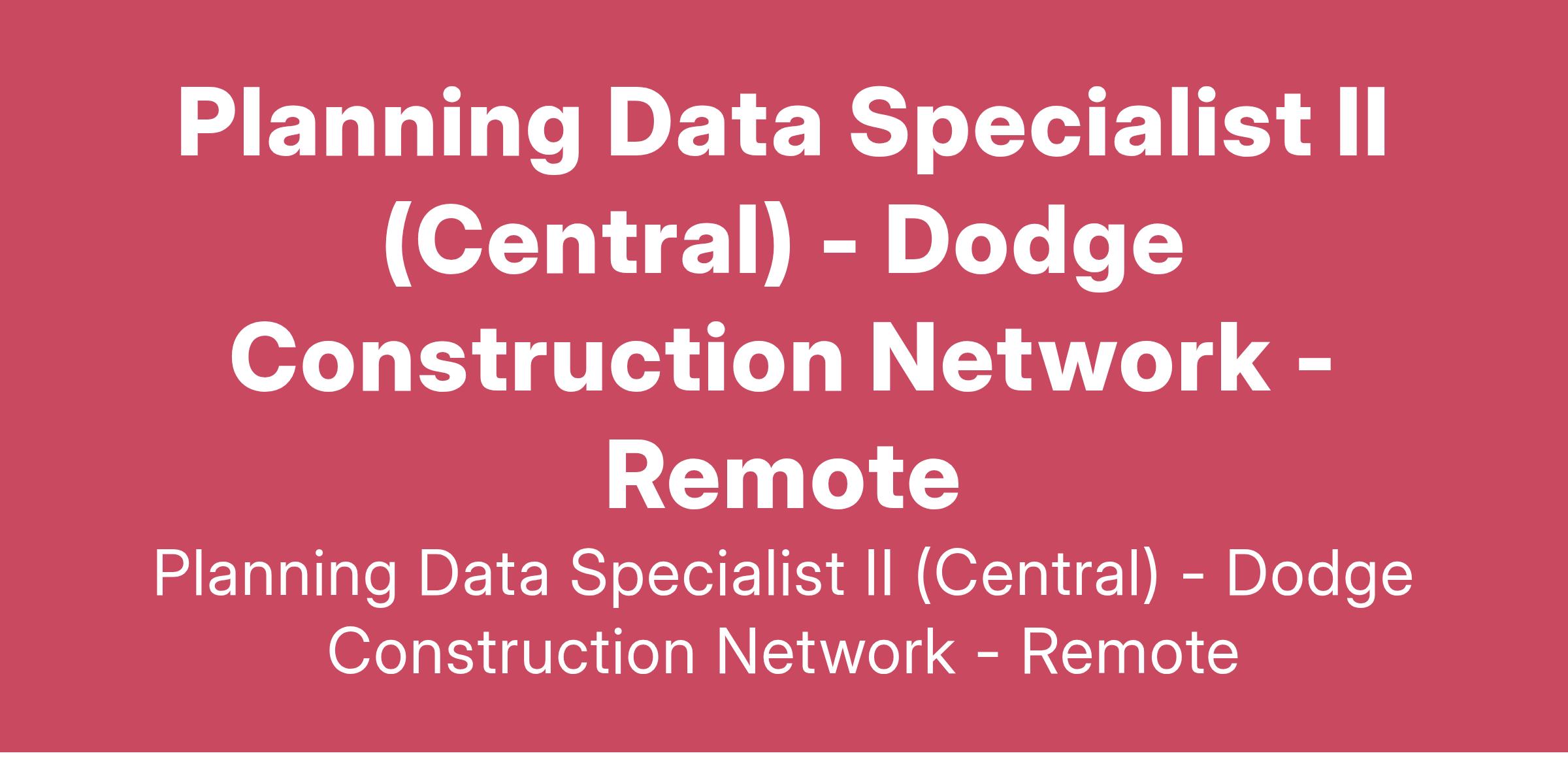 Dodge Construction Network (Dodge) is searching for a Planning Data Specialist II (Central) to join our team!