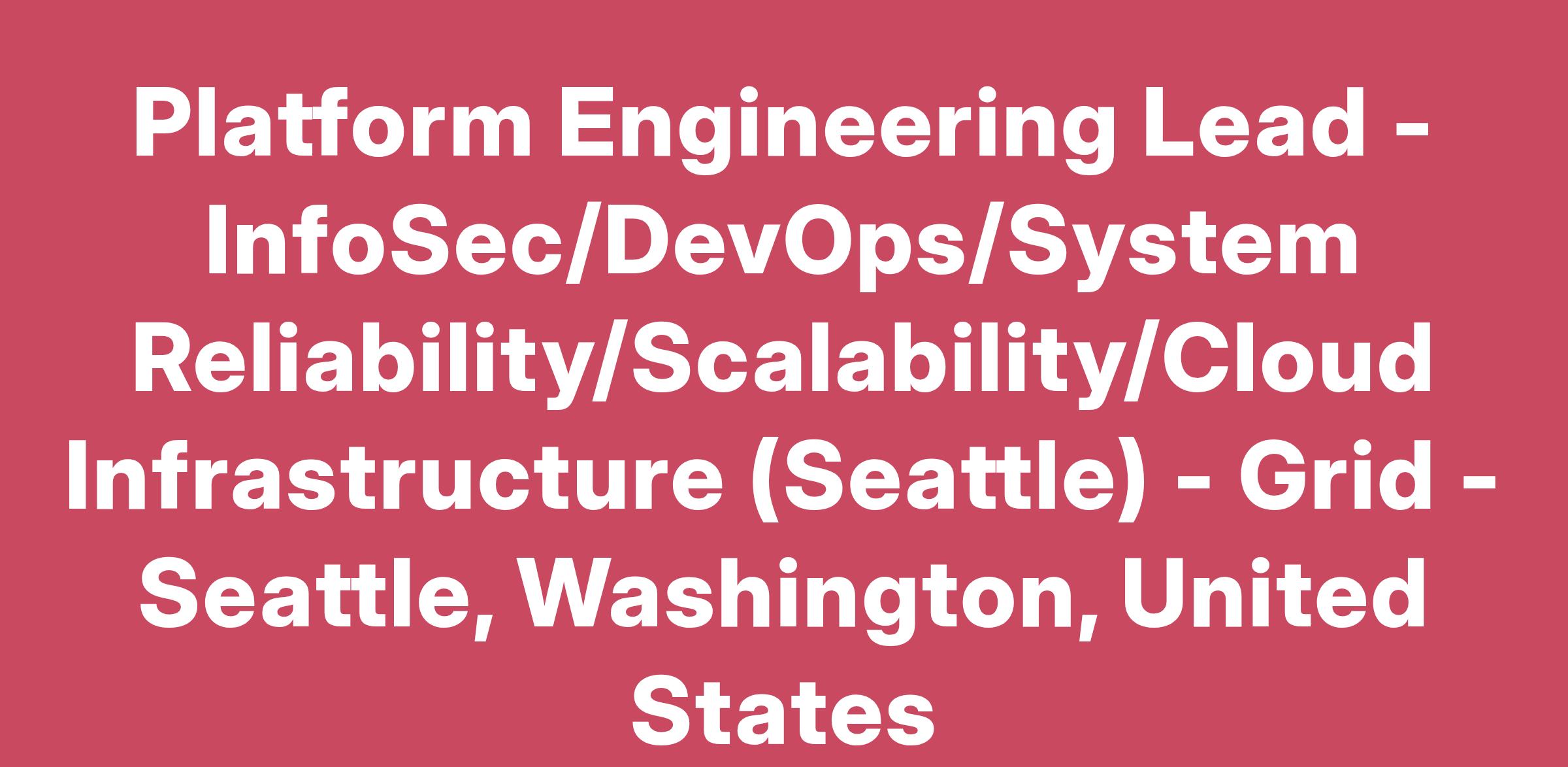 As a founding team member of our platform engineering function, you'll have an opportunity to design, own and operate Platform Engineering at Grid as we grow orders of magnitude.
