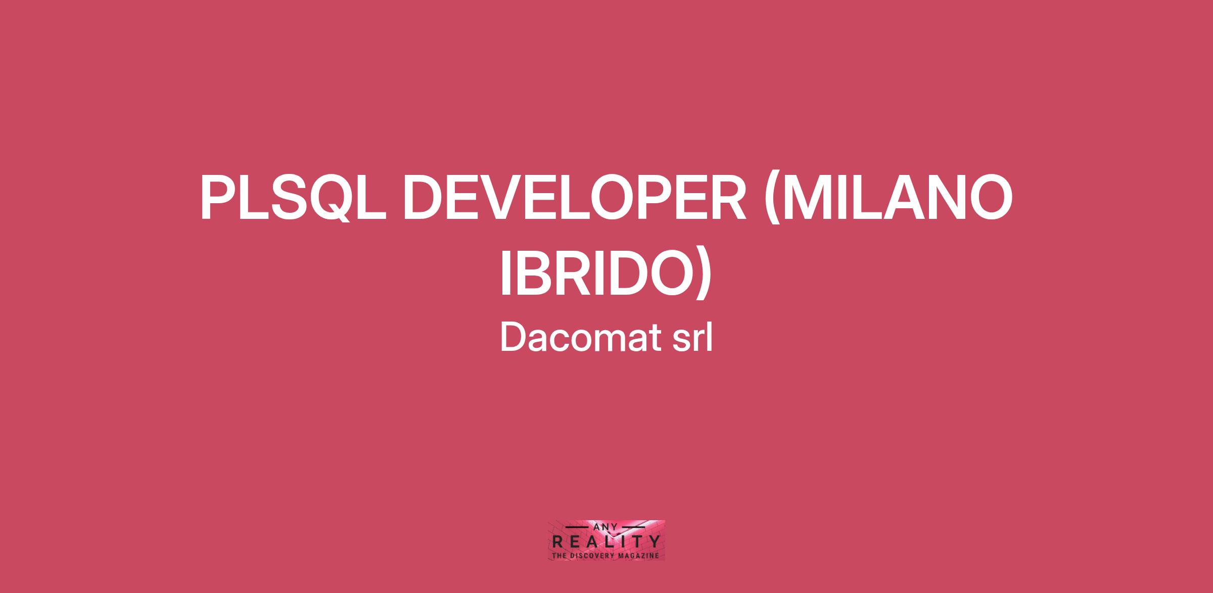 PLSQL DEVELOPER (MILANO IBRIDO)