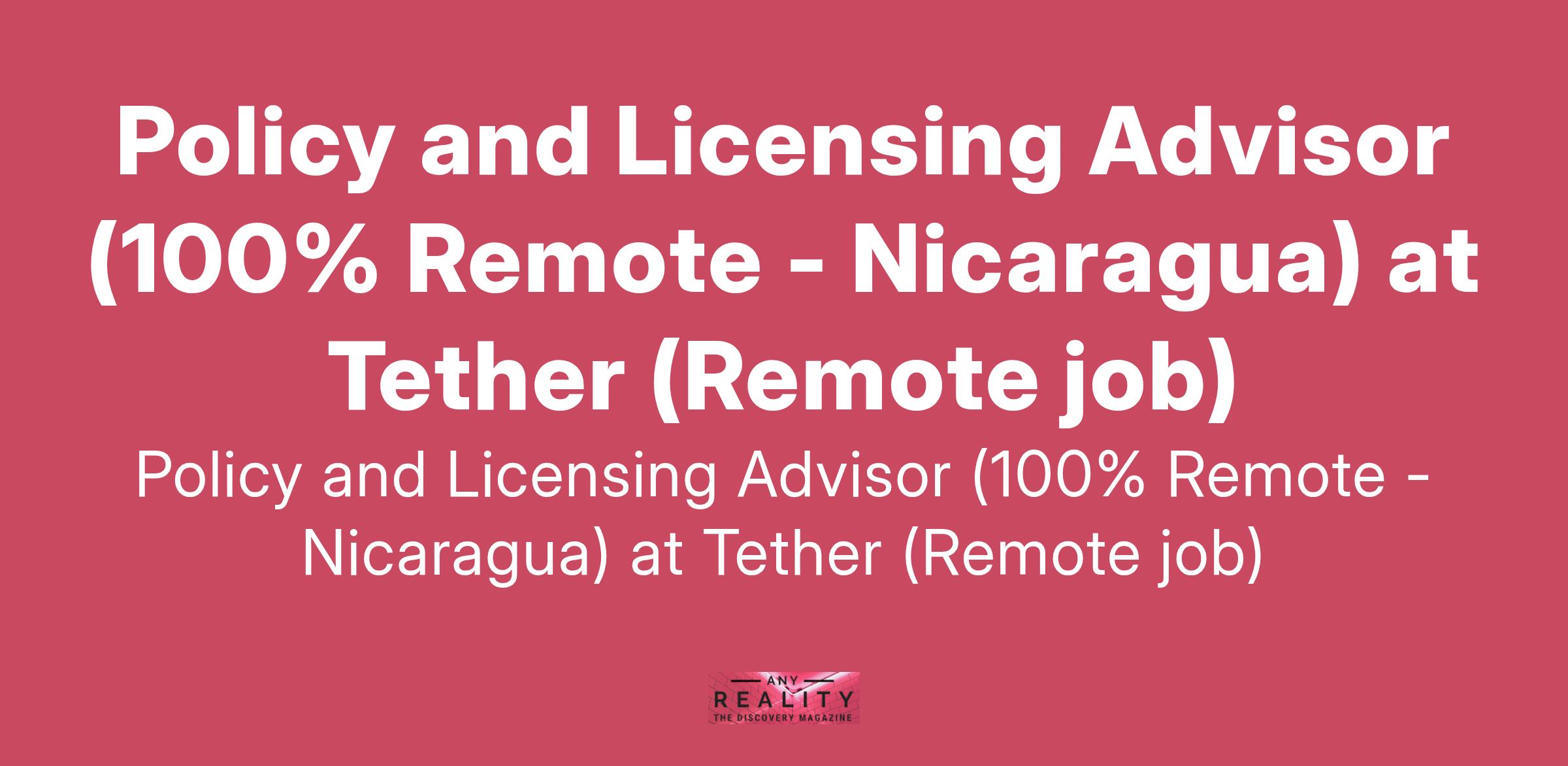 Policy and Licensing Advisor (100% Remote - Nicaragua) at Tether (Remote job)