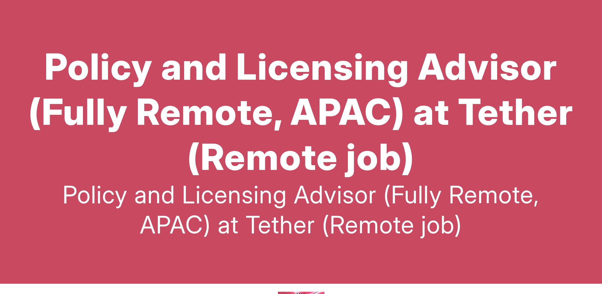 Policy and Licensing Advisor (Fully Remote, APAC) at Tether (Remote job)