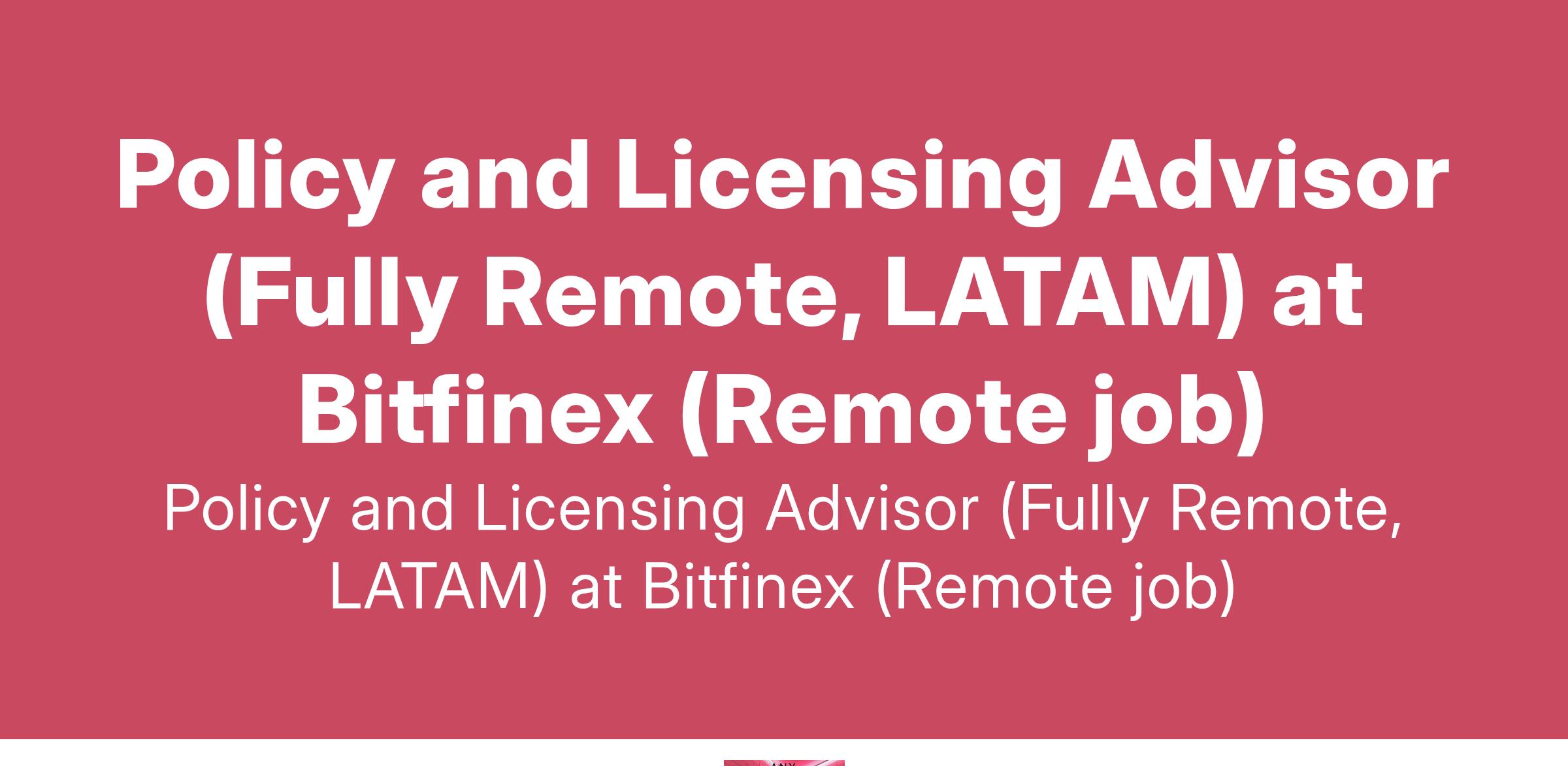 Policy and Licensing Advisor (Fully Remote, LATAM) at Bitfinex (Remote job)