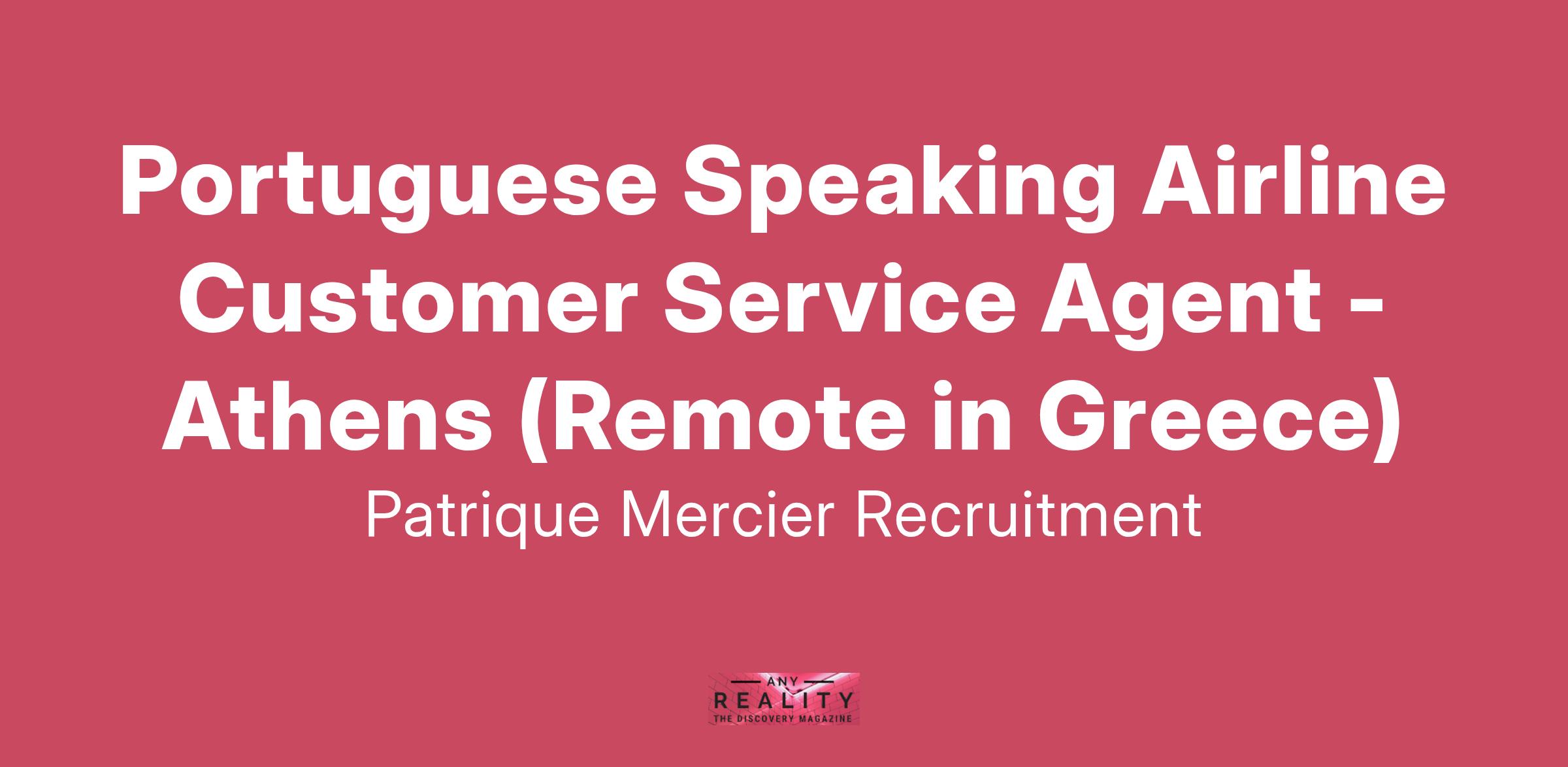 Patrique Mercier Recruitment is excited to present a unique opportunity for Portuguese speakers! We are currently seeking a Portuguese Speaking Airline Customer Service Agent to join our team, offering the flexibility of remote work from Greece. This role allows you to assist customers in the airline industry while living in one of the most beautiful and culturally rich countries in the world. If you are passionate about providing top-notch customer service and are eager to embrace a new challenge, this is the perfect opportunity for you!