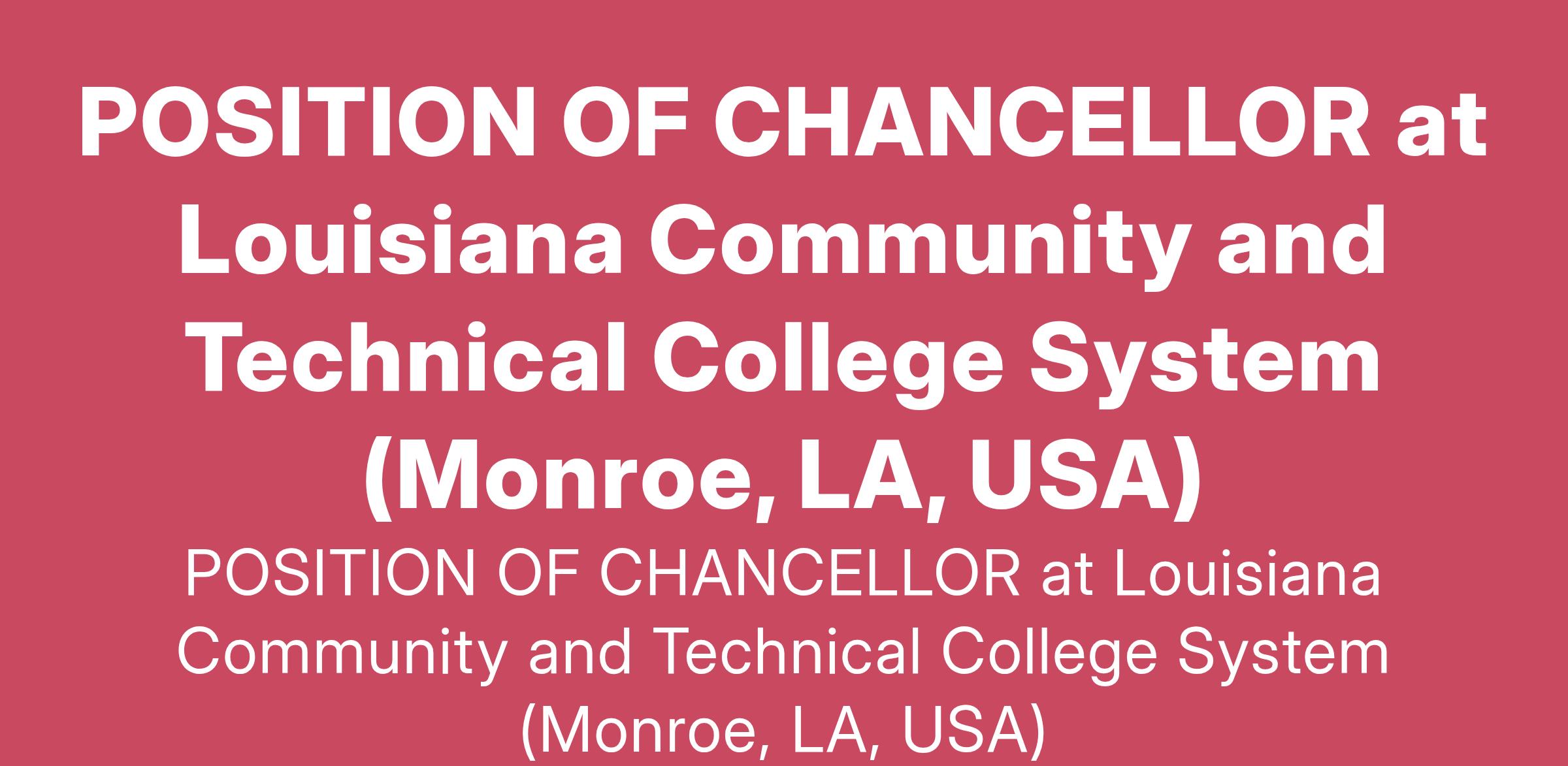 POSITION OF CHANCELLOR at Louisiana Community and Technical College System (Monroe, LA, USA)