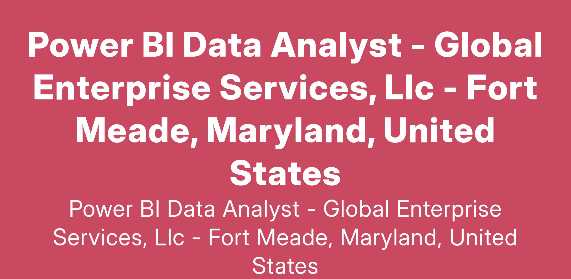 GES is supporting an extensive digital modernization program critical to DISA and Fourth Estate Agencies and is currently seeking a Power BI Data Analyst to support our customer at Ft. Meade, MD; however, this position can be remote.