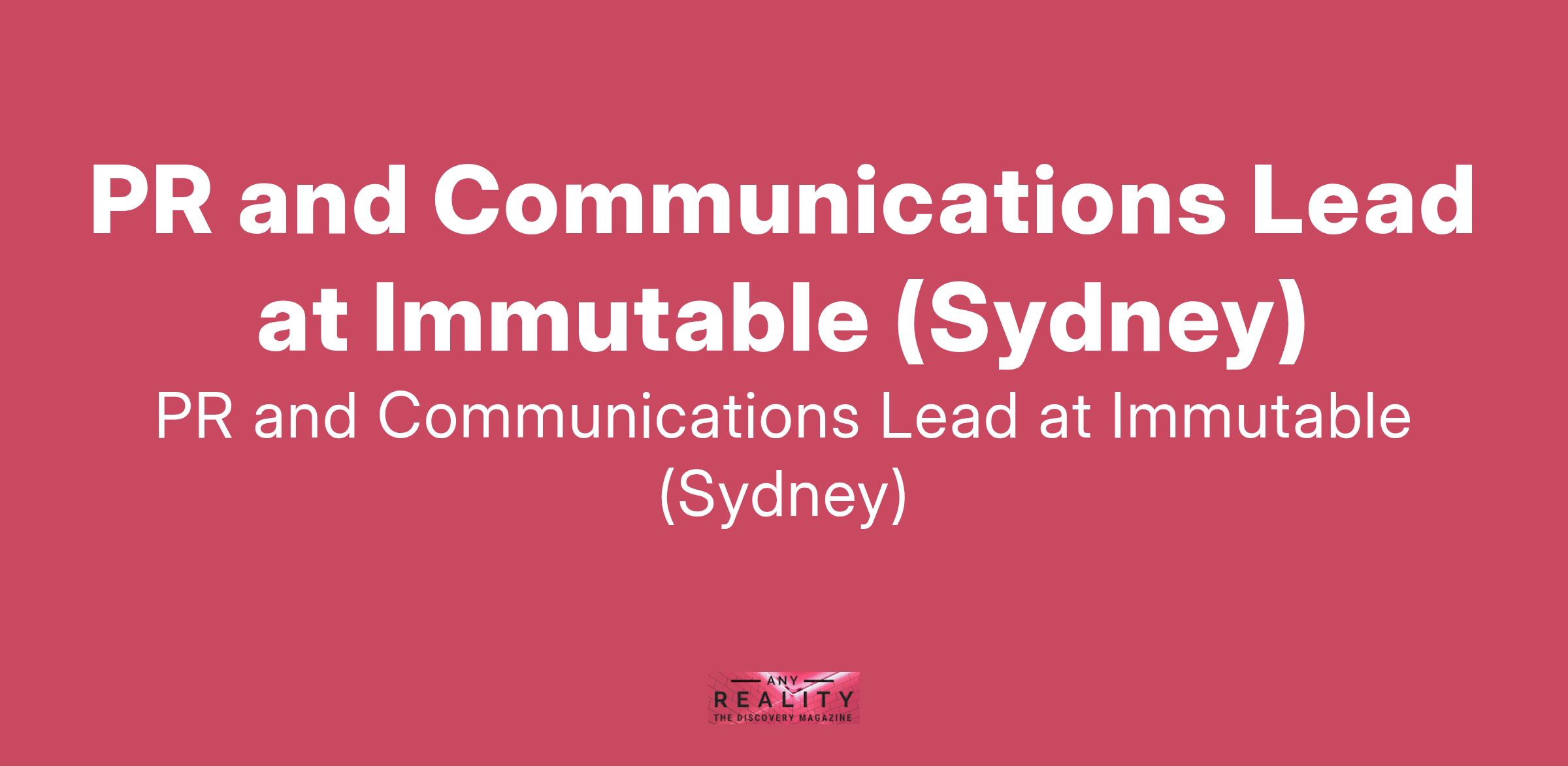 PR and Communications Lead at Immutable (Sydney)
