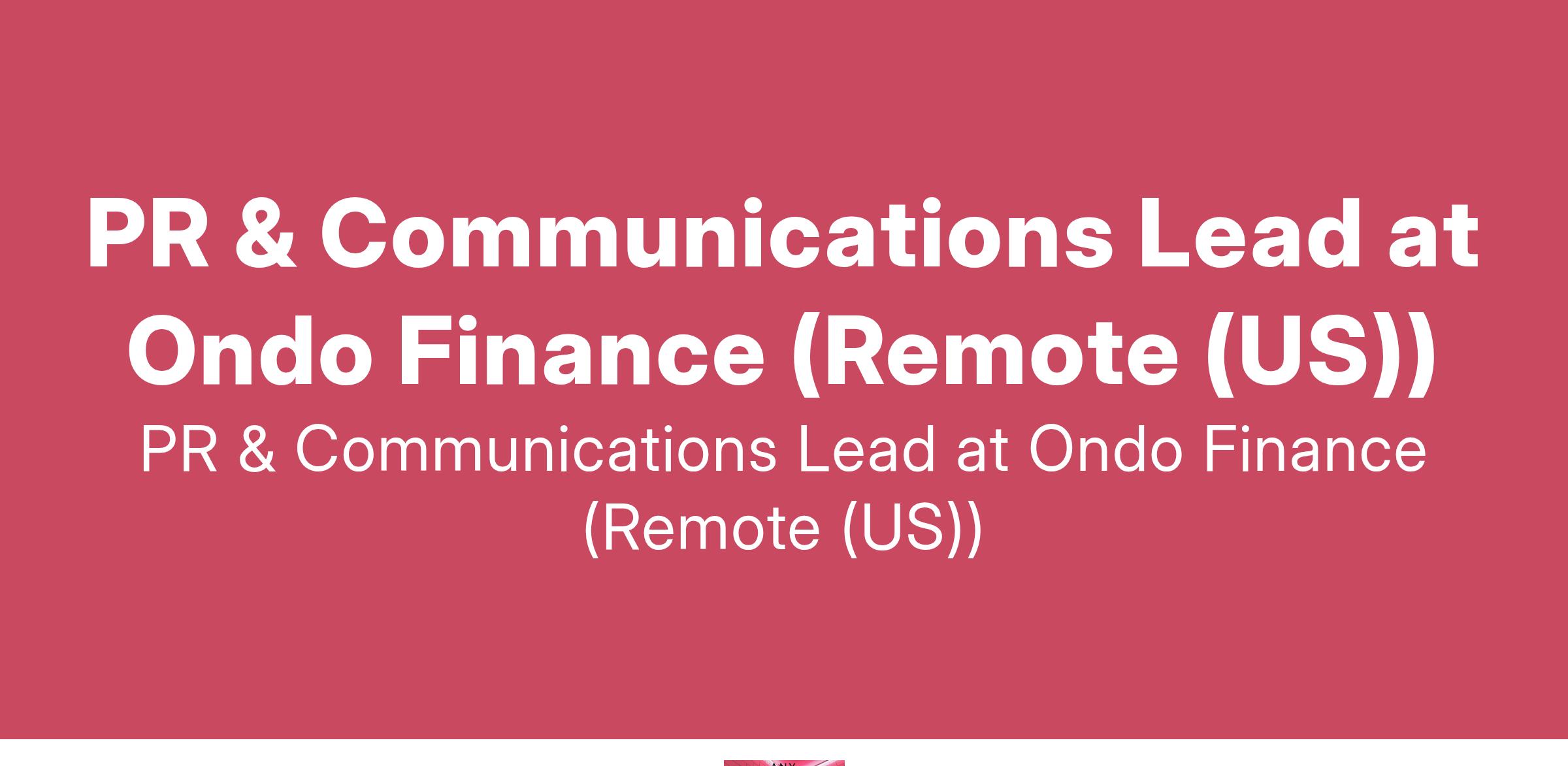 PR & Communications Lead at Ondo Finance (Remote (US))