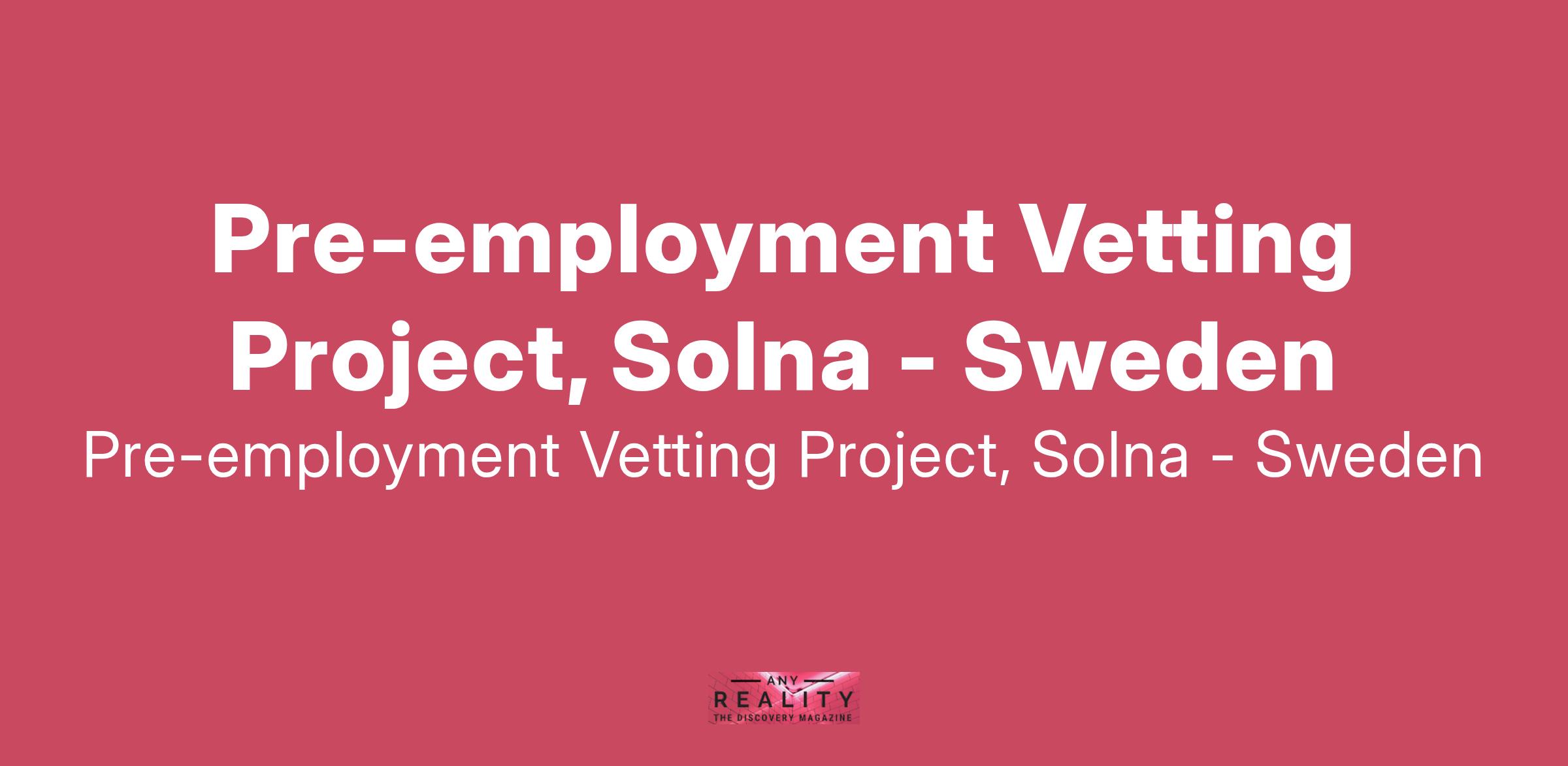 I am seeking a professional service for pre-employment vetting in Solna, Sweden. The primary focus will be on conducting thorough employment checks. Ideal Skills and Experience: - Expertise in conducting... (Budget: $30 - $250 USD, Jobs: Data Entry, Data Processing, Database Administration, Photo Editing, Photography)