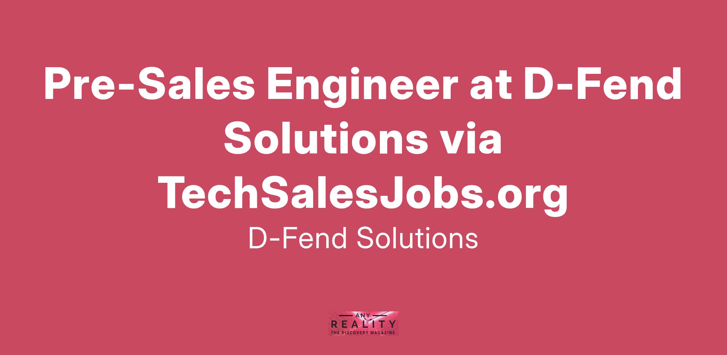 Pre-Sales Engineer at D-Fend Solutions via TechSalesJobs.org