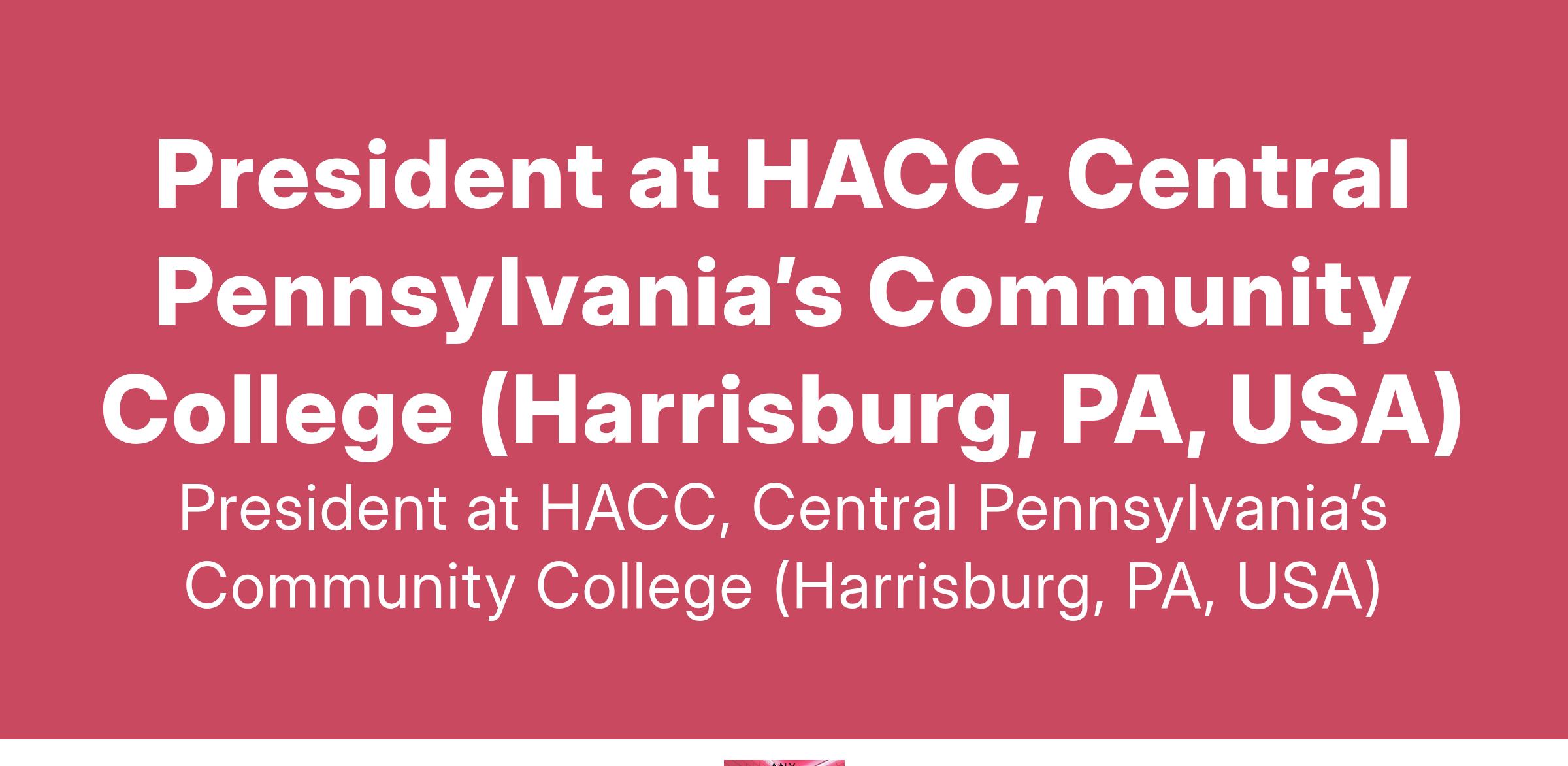 President at HACC, Central Pennsylvania’s Community College (Harrisburg, PA, USA)