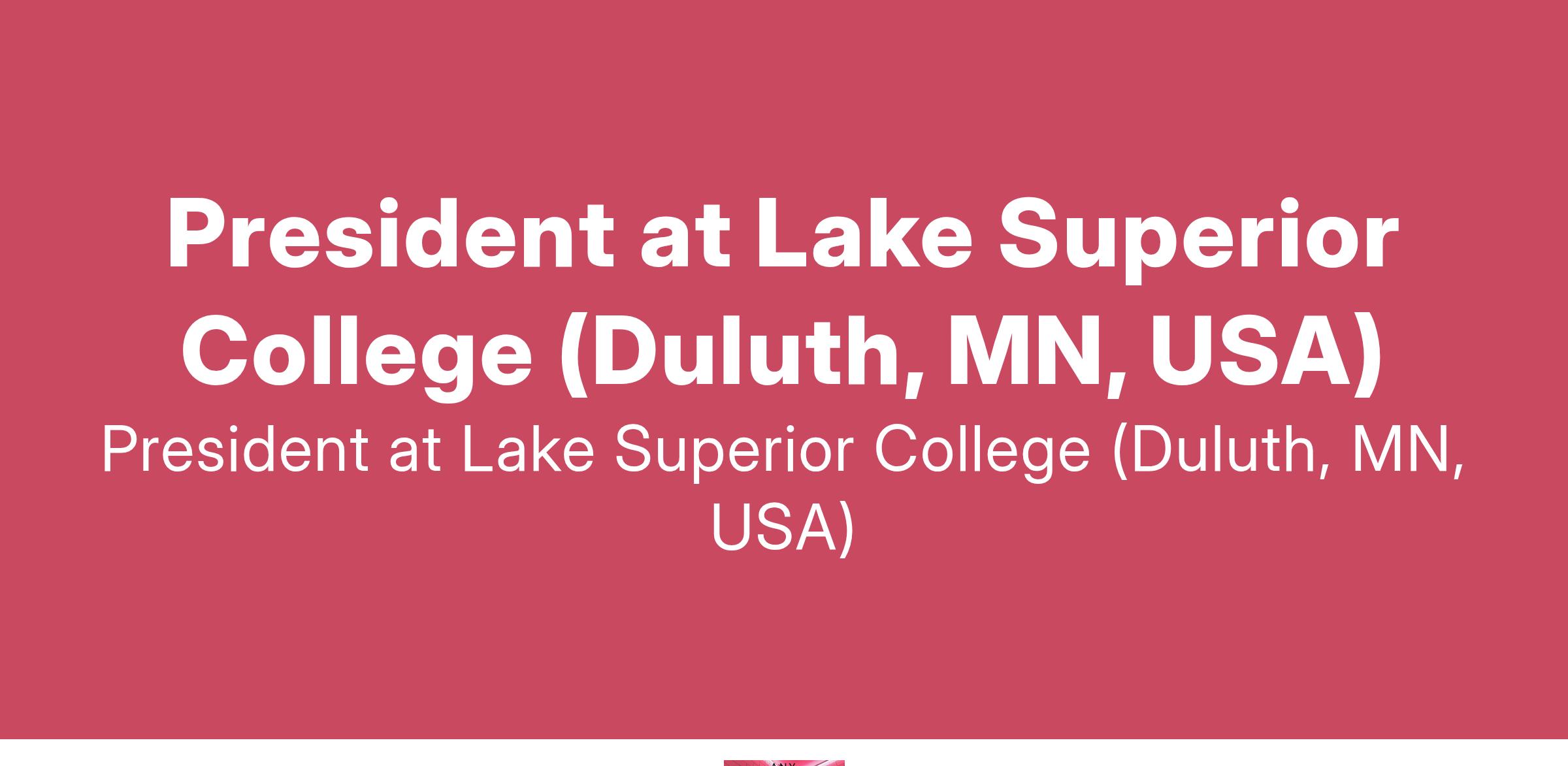 President at Lake Superior College (Duluth, MN, USA)