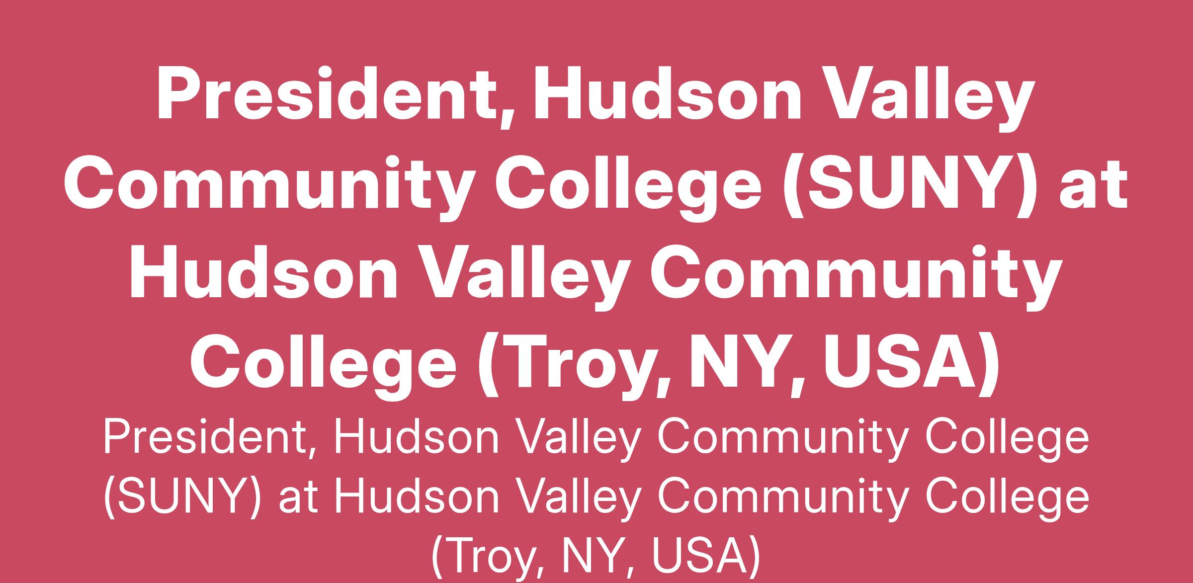 President, Hudson Valley Community College (SUNY) at Hudson Valley Community College (Troy, NY, USA)