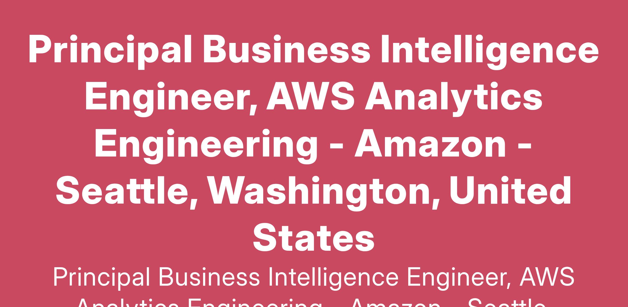 AWS is looking for a Principal Business Intelligence Engineer to join the AWS Analytics Engineering (AAE) team. This is your opportunity to be part of a team that has direct impact on foundational cloud services such as Amazon Elastic Compute Cloud (EC2), Amazon’s Simple Storage Service (S3), Amazon Q Developer, Serverless, Databases, Networking and many more.