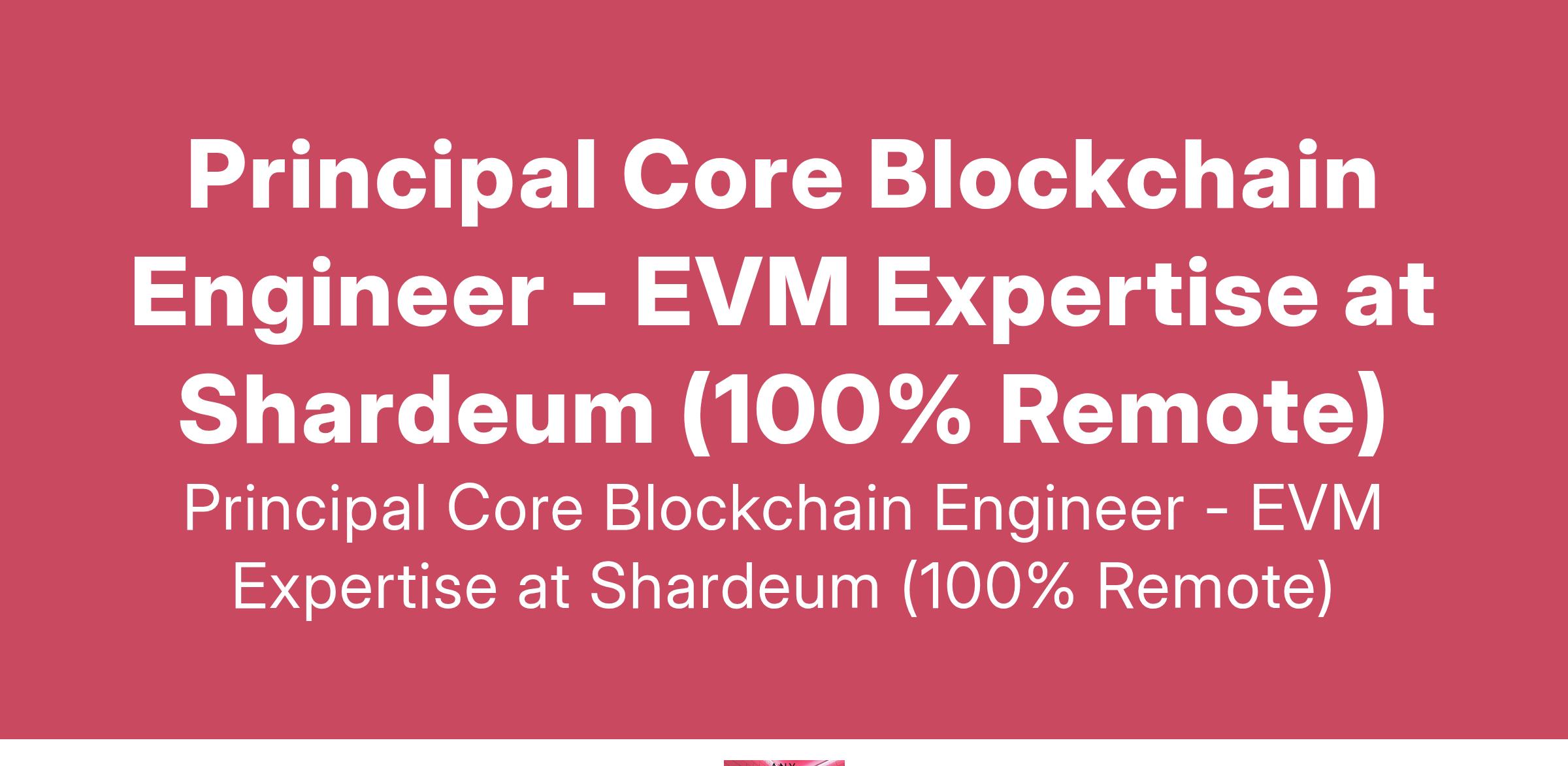 Principal Core Blockchain Engineer - EVM Expertise at Shardeum (100% Remote)
