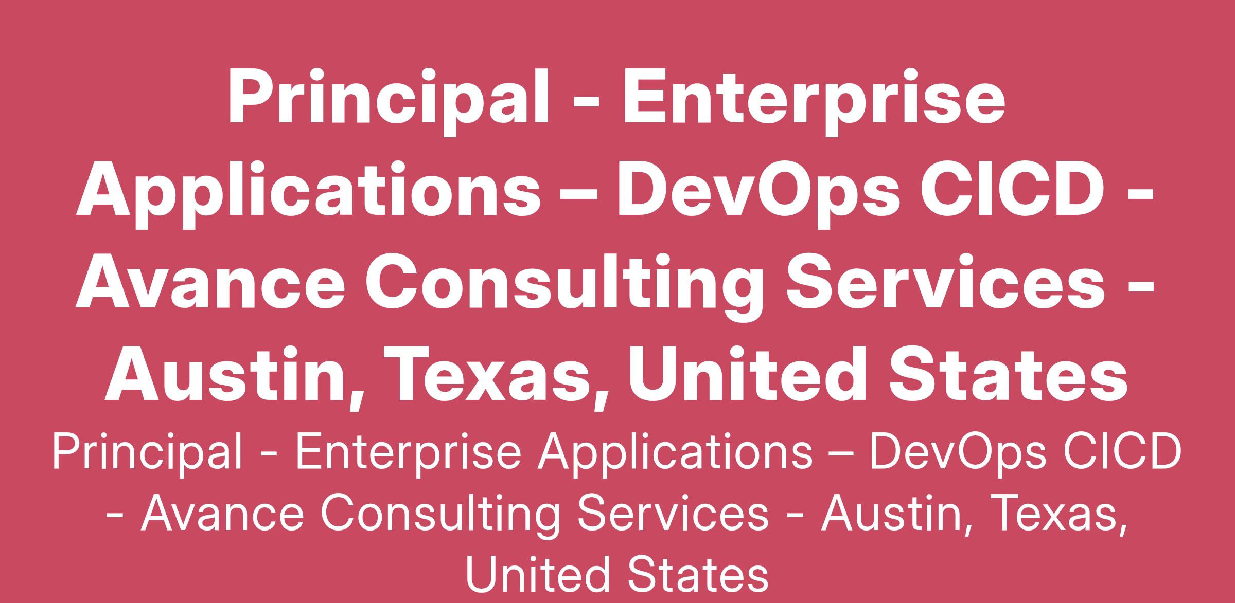 Role/Position: Principal - Enterprise Applications – DevOps CICD