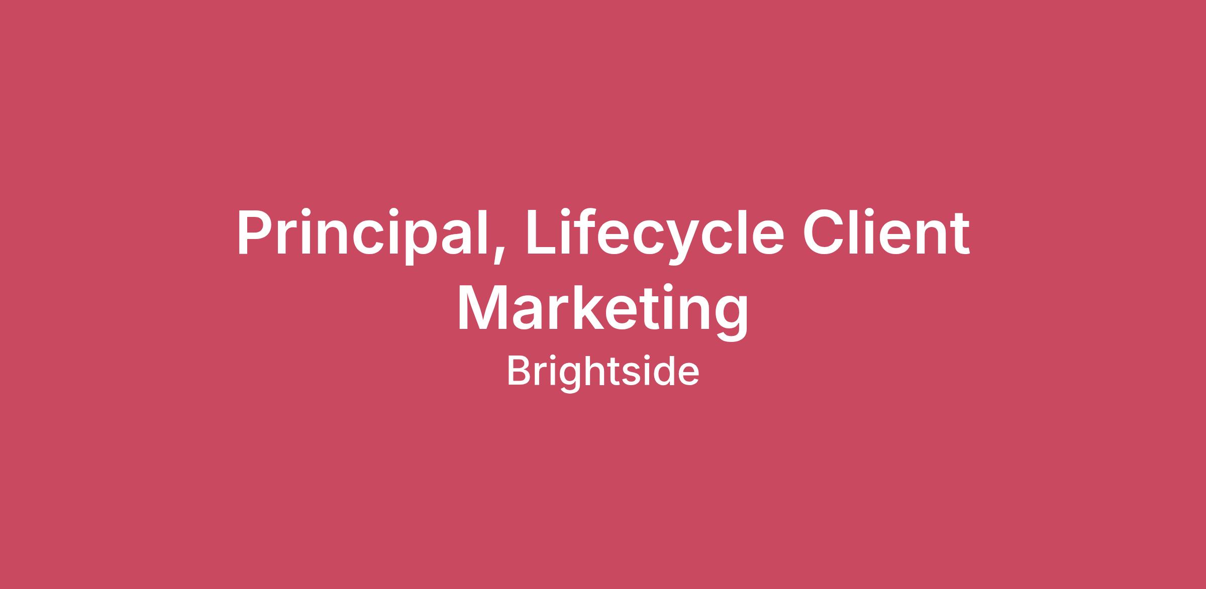 A bit about this role: The Principal, Lifecycle Client Marketing will lead the development, execution, and optimization of all marketing and engagement strategies across assigned customer portfolios. This role oversees creative direction, partner communications, and cross-channel engagement strategies that drive measurable impact through email, direct mail, in-app messaging, employer training events, and other engagement strategies.The meaningful work you will tackle: Client Engagement Strategy & LeadershipLead the overall development and execution of Brightside’s multi-channel client engagement strategy, ensuring alignment with customer success goals and business prioritiesDevelop the 2026 Client Engagement and Communications Plan in partnership with Customer Success and other internal stakeholdersEnsure all client engagement activities reinforce Brightside’s brand voice, values, and engagement objectivesAct as the primary strategic liaison between Marketing, Customer Success, and Product, ensuring cohesive communication strategies across all touch pointsCampaign Planning & ExecutionOversee the planning and deployment of targeted, segmented engagement campaigns across email, mailers, push notifications, and in-app messagingSet and manage deployment schedules for major campaigns (e.g., Consolidated Credit, Student Loan Wage Garnishments, Free Financial Tools)Direct the creation of campaign briefs, timelines, and execution plans to ensure timely delivery and cross-team coordinationEnsure campaign deliverables are error-free, on-brand, and optimized for engagement and conversionCreative Direction & Brand StewardshipProvide creative direction and feedback on all marketing and communication materials, ensuring consistent messaging and design across channelsOversee the evolution of Brightside’s visual and narrative identity to support client engagement goals and campaign differentiationCollaborate with internal design, content, and product teams to translate business objectives into compelling, actionable creative outputsPerformance Analysis & Continuous ImprovementReview, analyze, and synthesize campaign performance data to identify insights and optimize engagement strategiesEstablish frameworks for reporting and continuous learning across clients and channelsMaintain and evolve marketing project documentation and playbooks to ensure ongoing alignment with Brightside’s strategic objectivesParticipate actively in cross-functional meetings, sharing updates, priorities, and insights to inform decision-making and alignmentWhat we’re looking for in your background & what makes you a success: 5+ years of experience in a Marketing role - client marketing requiredThe use of modern marketing tools, like Salesforce Marketing Cloud/Hubspot, Jira, Asana and use of AIDemonstrable knowledge of best practices in B2B right demand generation, account-based marketing, content marketing, marketing automation, and lead nurturingExperience in project management and building integrated online campaignsStrong analytical and quantitative capability to determine program effectiveness, ROI, etcAbility to collaborate and work cross-functionally with our internal stakeholdersStrong experience with Google and other communication tools (Gmail, Docs, Sheets, Slides, Slack, etc)Exceptional presentation, communication, and organizational skillsStrong knowledge of marketing & sales automation tools and platforms