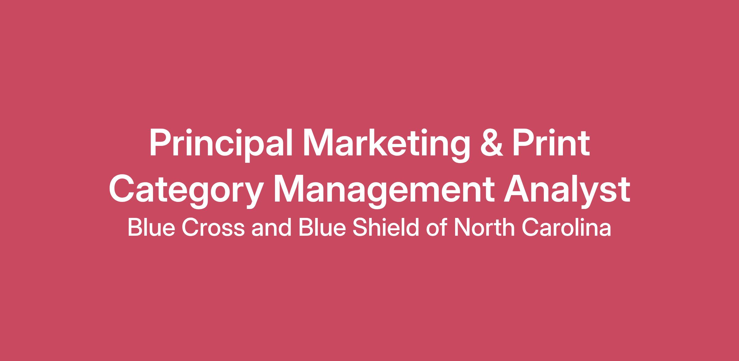 Job DescriptionBlue Cross NC is looking for an exceptional Principal Marketing & Print Category Management Analyst to shape innovative supplier strategies, oversee critical sourcing initiatives, and cultivate influential partnerships. This exciting role offers the opportunity to manage high-impact contracts, optimize costs, monitor performance, and negotiate valuable agreements. The ideal candidate will deliver substantial savings and transform supplier relationships through visionary leadership and strategic sourcing expertise.What You’ll DoImplement Blue Cross NC enterprise sourcing strategy and drive millions in annual savings to meet established targetsUnderstand Blue Cross NC enterprise business needs and act as authoritative voice of Blue Cross NC to the suppliers regarding business needs, requirements, expectations, and directionLead and coordinate roadmap discussions and engagement with executives to establish the sourcing strategy for critical business capabilitiesUnderstand, analyze, and forecast complex market and industry dynamics and share subject matter expertise and industry knowledge within the strategic portfolio of products and services.Conduct complex enterprise sourcing events with strategic suppliers, including development of project work plan, category profile, category strategy, minimum requirements and evaluation criteria, solicitationFind solutions, build proposals, and execute sourcing events to meet business requirements, striking a balance between supply continuity, cost, and deliveryDevelop and implement assorted bid documents and requests (i.e. RFP, RFI, RFQ); Manage status reporting and performance metrics of sourcing activities for strategic vendors.Partner with stakeholders to source products and services using proven tools, processes, and analytics to drive and achieve business results.Evaluate analyses of sourcing results from a total cost of ownership perspective and provide optimization recommendationsParticipate in cross-functional teams responsible for complex vendor negotiations, including those that require specialized subject matter expertise, nonstandard risk mitigation solutions, and coordination of multiple arrangements.Lead supplier relationship management and performance for the largest and most complex suppliers in the Enterprise from both an operational and risk management perspectiveProactively establish and foster successful, positive working relationships with vendor personnel. Drive vendor engagement through formal and informal transactions.What You BringBachelor's degree or advanced degree (where required)8+ years of experience in related fieldIn lieu of degree, 10+ years of experience in related fieldBonus Points Highly Preferred: Marketing & Print Category Management experienceWhat You’ll GetThe opportunity to work at the cutting edge of health care delivery with a team that’s deeply invested in the community.Work-life balance, flexibility, and the autonomy to do great work.Medical, dental, and vision coverage along with numerous health and wellness programs.Parental leave and support plus adoption and surrogacy assistance.Career development programs and tuition reimbursement for continued education.401k match including an annual company contributionSalary RangeAt Blue Cross NC, we take great pride in a fair and equitable compensation package that reflects market-price and our starting salaries are typically planned near the middle of the range listed. Compensation decisions are driven by factors including experience and training, specialized skill sets, licensure and certifications and other business and organizational needs. Our base salary is part of a robust Total Rewards package that includes an Annual Incentive Bonus*, 401(k) with employer match, Paid Time Off (PTO), and competitive health benefits and wellness programs. *Based on annual corporate goal achievement and individual performance. $107,901.00 - $172,642.00SkillsBid Management, Category Management, Category Strategy, Contract Management, Negotiation, Procurement, Sourcing Strategies, Strategic Sourcing, Supplier Relationship Management, Supply Chain, Vendor Engagement, Vendor Management, Vendor Negotiations, Vendor Relationships