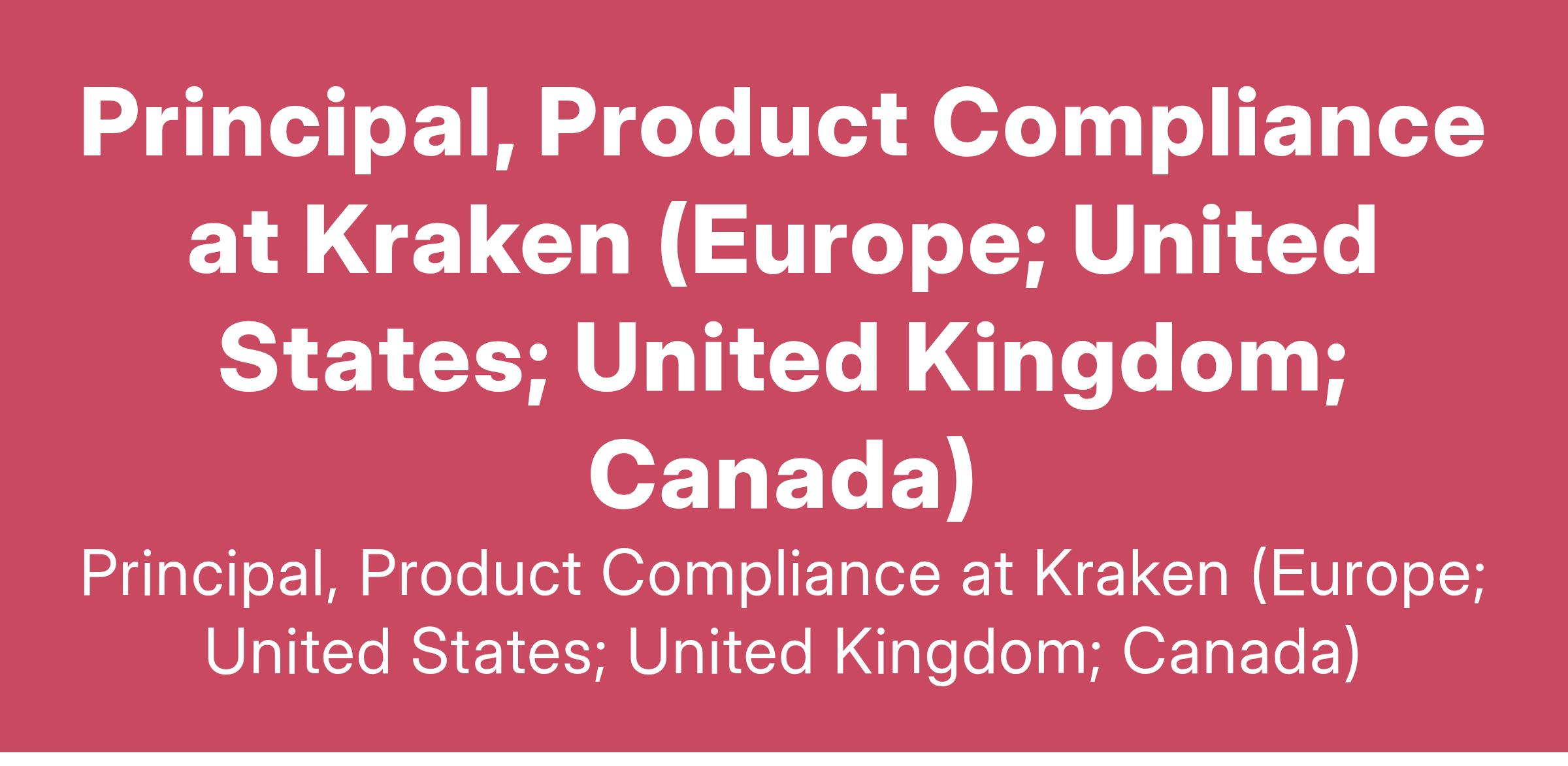 Principal, Product Compliance at Kraken (Europe; United States; United Kingdom; Canada)