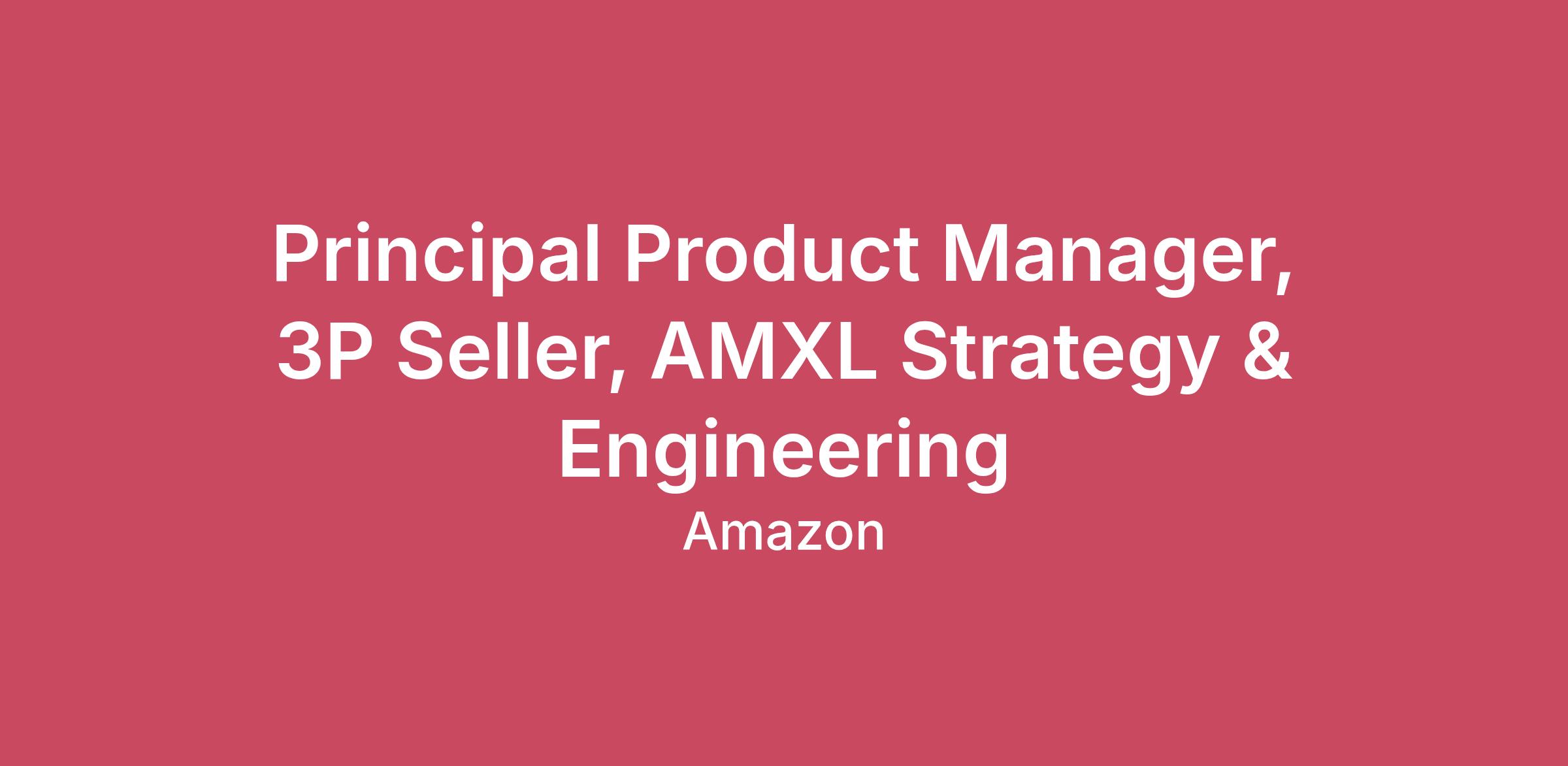 Amazon is seeking a Principal Product Manager in Amazon Extra Large (AMXL) who will be part of a start-up group that’s defining and rolling out strategies to grow FBA and MFN and build products for the Product strategy and Engineering organization.This role is part of the Worldwide AMXL Strategy/Product org which is designed to help Amazon improve and expand the delivery of large items and those requiring special handling and additional services for exceptional customer experience. This Principal Product manager will be a resourceful and confident team player who can think out of the box in an ambiguous problem space, and is willing to roll up their sleeves to build a program that will significantly impact Amazon’s warehousing and delivery capabilities globally.Key job responsibilitiesDefine business strategy and seller initiatives that will help us grow profitability and achieve topline growth.Define seller incentives/fee strategy to maximize market segment shareWrite strategy proposals/product PRFAQ's and other artifacts to influence building right features and products.Own, build and drive strategy for NA 3P AMXL supply chain and be a key part of our business with Tech and Operations.Define the business and product strategyManage prioritization and trade-offs for speed to market, performance and features.Promote data-driving decision making throughout the team.Address barriers through problem solving and coordination with stakeholders.Partner with other teams across Supply Chain and Business teams to identify and influence development of new products and services.Build and manage high quality product roadmaps based on your vision and strategy.Gain support for your strategy and roadmap from stakeholders by writing narratives and influencing peers and senior leadership.Communicate performance, articulate root-cause analysis and link to specific improvement areas.Up to 10% travel required- 10+ years of product or program management, product marketing, business development or technology experience- 10+ years of blending product and program management skills to execute strategic initiatives about process creation, standardization, and improvement experience- Bachelor's degree- Experience owning/driving roadmap strategy and definition- Experience with end to end product delivery- Experience with feature delivery and tradeoffs of a product- Experience as a product manager or owner- Experience owning technology productsAmazon is an equal opportunity employer and does not discriminate on the basis of protected veteran status, disability, or other legally protected status.Our inclusive culture empowers Amazonians to deliver the best results for our customers. If you have a disability and need a workplace accommodation or adjustment during the application and hiring process, including support for the interview or onboarding process, please visit https://amazon.jobs/content/en/how-we-hire/accommodations for more information. If the country/region you’re applying in isn’t listed, please contact your Recruiting Partner.The base salary range for this position is listed below. Your Amazon package will include sign-on payments and restricted stock units (RSUs). Final compensation will be determined based on factors including experience, qualifications, and location. Amazon also offers comprehensive benefits including health insurance (medical, dental, vision, prescription, Basic Life & AD&D insurance and option for Supplemental life plans, EAP, Mental Health Support, Medical Advice Line, Flexible Spending Accounts, Adoption and Surrogacy Reimbursement coverage), 401(k) matching, paid time off, and parental leave. Learn more about our benefits at https://amazon.jobs/en/benefits.USA, WA, Bellevue - 161,900.00 - 219,000.00 USD annually