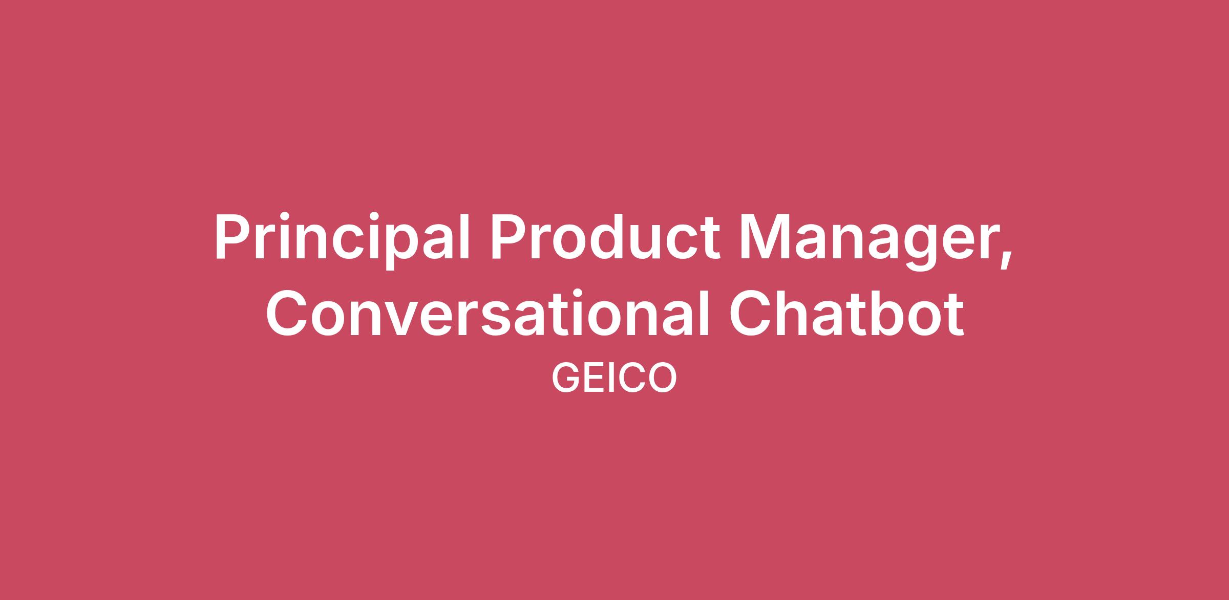 At GEICO, we offer a rewarding career where your ambitions are met with endless possibilities. Every day we honor our iconic brand by offering quality coverage to millions of customers and being there when they need us most. We thrive through relentless innovation to exceed our customers’ expectations while making a real impact for our company through our shared purpose. When you join our company, we want you to feel valued, supported and proud to work here. That’s why we offer The GEICO Pledge: Great Company, Great Culture, Great Rewards and Great Careers.At GEICO, we offer a rewarding career where your ambitions are met with endless possibilities. Every day we honor our iconic brand by offering quality coverage to millions of customers and being there when they need us most. We thrive through relentless innovation to exceed our customers’ expectations while making a real impact for our company through our shared purpose. When you join our company, we want you to feel valued, supported and proud to work here. That’s why we offer The GEICO Pledge: Great Company, Great Culture, Great Rewards and Great Careers. GEICO, subsidiary of Berkshire Hathaway and a leader in Auto insurance and other product lines, is on a multi-year technology transformation journey to reimagine the customer experience in the Insurance industry by removing friction across Customers, Partners, Marketplace, Segments, Channels, and build a world class experience powered by technology.As part of this once-in-a lifetime opportunity to build and make a real impact, we are looking for an accomplished, customer-obsessed and results-oriented Principal Product Manager to drive our online and mobile experience serving millions of customers. This role, as part of the newly formed Service Consumer Experience team will be at the helm of strategizing, developing, and enhancing the consumer journey through digital products.Position SummaryYou will work cross-functionally to guide complex products from conception to launch by connecting the product vision and specific solutions needed to solve business and customer problems. And do this by breaking down complex problems into steps that drive product development while modernizing our experience and platforms & leapfrogging the competition.You will work and partner with engineering, operations, sales, design and other product teams to reimagine and build GEICO’s Digital Experience to serve the customer service needs in the entire policy lifecycle. You will be a single-threaded owner to drive end-to-end experience across mobile app/web/desktop platforms, across all business lines that are platform agnostic.You'll be key to driving GEICO's digital transformation by being part of a growing Product Organization working in cross-functional teams to implement cutting edge technologies, foster a culture of innovation, and ensure seamless integration of digital solutions across the organization. This role would be great for someone who is a builder, thrives in an ambiguous startup environment.This position is a hybrid role based either out of - San Francisco Bay area; OR Greater Washington DC Metropolitan (DMV) area.Responsibilities:The ideal candidate is excellent at:Building complex conversational AI and Chatbot experiences and features at large scale.Defining and executing a multi-year unified vision in close partnership with our business and engineering teams.Leading cross-functional teams that drive results during product discovery and product delivery.Synthesizing business, market, and platform data to identify opportunities, size them, and turn insights into product vision, strategy and requirements.Owning and prioritizing short term and long-term product roadmap to deliver on business outcomes, working closely with a cross-functional team to ensure that all the right resources are aligned to ensure that and your team will be successful.Partner with UX team to drive a stellar experience for our customers.Work with stakeholders to create, prioritize and execute the product roadmap related to entire lifecycle of policy experience. Leveraging modern architecture & great design to identify problem-solution fit.Evaluating trade-offs and negotiating requirements.Creating and using compelling, informative artifacts to influence stakeholders (ex. Vision, Roadmaps, Features/Epics, Progress Updates, etc.).Understanding of current and future state architecture.Identifying and measuring KPIs (Key Performance Indicators), with an eye to adjusting and refining your roadmap as the data dictates.Mentor other Product Managers and help in building a high performing product organization.Basic Qualifications:Bachelor’s DegreeAt least 10+ years of experience in Product Management building complex software and technology products with proven record of accomplishment at large scale.Experience in building consumer facing online and mobile app products with strong customer focus and ownership mindset.Builder in mindset with proven experience in managing all aspects of building products throughout its lifecycle from concept to delivery to scaling.Experience using quantitative and qualitative data to inform design decisions and drive changePreferred Qualifications:MBA or equivalent experienceBachelor's degree in a technical field such as software engineering or computer scienceExperience in ecommerce, financial services and marketplace digital first companies.Self-starter and have a proven ability to operate in an ambiguous startup like environment At this time, GEICO will not sponsor a new applicant for employment authorization for this position. Benefits:As an Associate, you’ll enjoy our Total Rewards Program* to help secure your financial future and preserve your health and well-being, including:Premier Medical, Dental and Vision Insurance with no waiting period**Paid Vacation, Sick and Parental Leave401(k) PlanTuition AssistancePaid Training and Licensures*Benefits may be different by location
