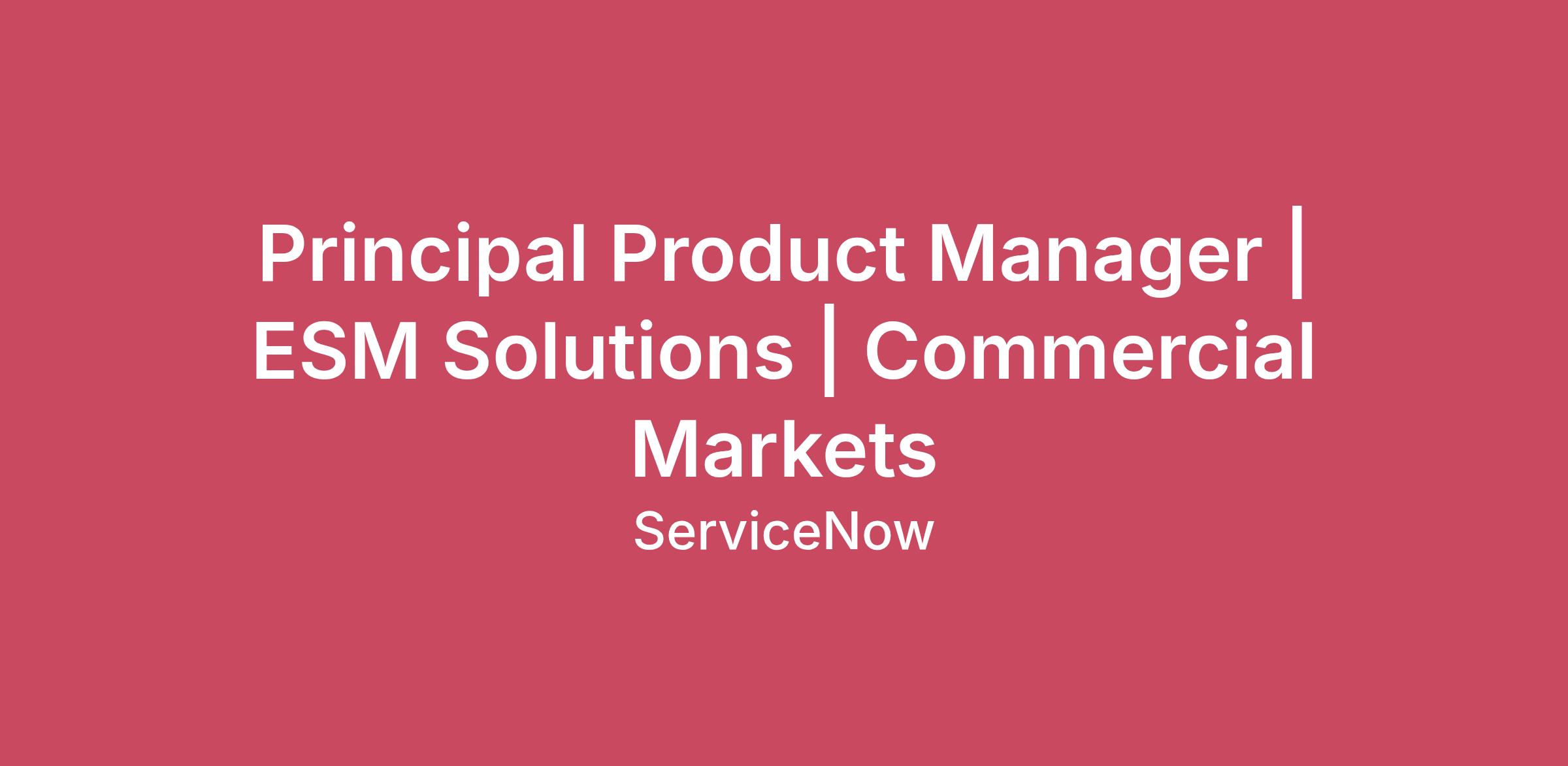 Principal Product Manager | ESM Solutions | Commercial Markets
