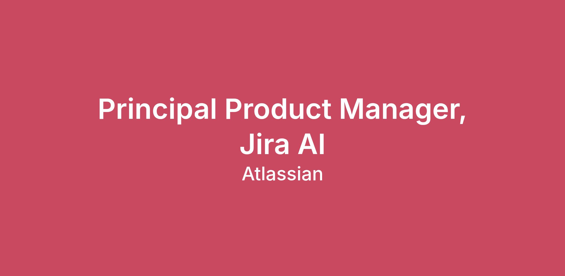 Overview Working at Atlassian:Atlassian's can choose where they work – whether in an office, from home, or a combination of the two. That way, Atlassian's have more control over supporting their family, personal goals, and other priorities. We can hire people in any country where we have a legal entity. Interviews and onboarding are conducted virtually, a part of being a distributed-first company.About the role:Atlassian has a wealth of data about how customers work - from the work items they create and manage every day in Jira, to data and information available across Atlassian’s Teamwork Graph. As a Principal Product Manager on the AI team in Jira, you will focus on delivering AI capabilities which leverage this data to help teams be more productive. You will drive the development and integration of cutting-edge AI technologies into Jira, empowering our teams to work smarter, more efficiently, and more collaboratively. Your customers are end users as well as internal feature teams who will leverage your work to implement AI at scale. You will be instrumental in shaping the product roadmap for AI experiences in Jira, influencing organizational direction, and ensuring AI can be valuable to millions of Jira users worldwide. Responsibilities Set the strategy and roadmap for AI capabilities in Jira, turning Atlassian’s rich data into breakthrough, customer-facing experiences.Be a key AI voice in Jira, shaping the broader product strategy and influencing how AI shows up across the product.Lead and inspire cross-functional teams - partnering with engineering, design, data science, and more - to deliver AI features at scale.Fuel innovation across Jira by enabling internal teams to build on shared AI capabilities while ensuring coherence and quality of experiences.Forge alignment with platform partners, driving shared vision, execution, and investment in AI foundations that accelerate Jira’s success.Define and drive key success metrics, using experimentation and data to drive iteration and measurable impact.Stay close to customers, uncovering pain points, validating concepts, and shaping product direction with their needs at the center.Scan the horizon, bringing in industry trends and emerging AI technologies to inform the next big bets.Act as an AI thought leader, mentoring peers, up-leveling teams, and spreading best practices across Atlassian.Communicate with clarity and influence, aligning stakeholders at every level - from delivery teams to executive leadership. Qualifications On your first day, we'll expect you have:10+ years of product management experienceTechnical fluency with a focus on AI, machine learning, and related technologiesTrue customer obsession – you go out of your way to talk to customers and solve their problemsExperience inspiring and mobilizing cross-functional teams towards a common visionExperience developing a multi-year product strategy and roadmap, gaining buy-in to executive leadership, and rallying a cross-functional teamA track record of building relationships and influencing all levels of the organization.Experience building a compelling business case for new opportunitiesTypically, product managers at this level at Atlassian have:Computer science or a related technical degreeCompensationAt Atlassian, we strive to design equitable, explainable, and competitive compensation programs. To support this goal, the baseline of our range is higher than that of the typical market range, but in turn we expect to hire most candidates near this baseline. Base pay within the range is ultimately determined by a candidate's skills, expertise, or experience. In the United States, we have three geographic pay zones. For this role, our current base pay ranges for new hires in each zone are:Zone A: $193,500 - $252,625Zone B: $174,600 - $227,950Zone C: $161,100 - $210,325This role may also be eligible for benefits, bonuses, commissions, and equity.Please visit go.atlassian.com/payzones for more information on which locations are included in each of our geographic pay zones. However, please confirm the zone for your specific location with your recruiter.Benefits & PerksAtlassian offers a wide range of perks and benefits designed to support you, your family and to help you engage with your local community. Our offerings include health and wellbeing resources, paid volunteer days, and so much more. To learn more, visit go.atlassian.com/perksandbenefits.About AtlassianAt Atlassian, we're motivated by a common goal: to unleash the potential of every team. Our software products help teams all over the planet and our solutions are designed for all types of work. Team collaboration through our tools makes what may be impossible alone, possible together.We believe that the unique contributions of all Atlassians create our success. To ensure that our products and culture continue to incorporate everyone's perspectives and experience, we never discriminate based on race, religion, national origin, gender identity or expression, sexual orientation, age, or marital, veteran, or disability status. All your information will be kept confidential according to EEO guidelines.To provide you the best experience, we can support with accommodations or adjustments at any stage of the recruitment process. Simply inform our Recruitment team during your conversation with them.To learn more about our culture and hiring process, visit go.atlassian.com/crh.