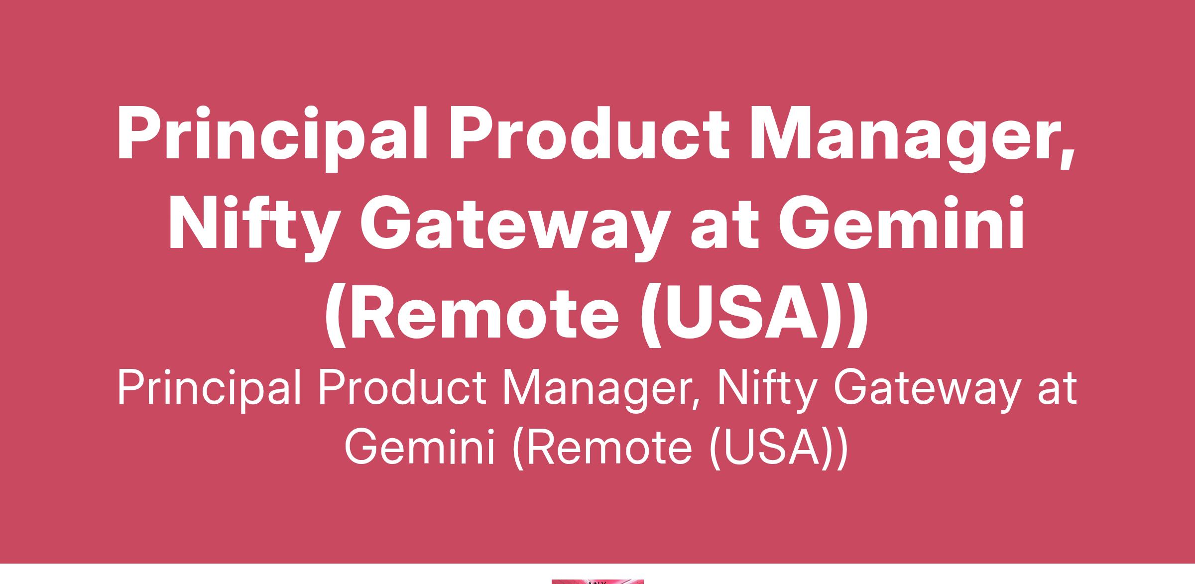 Principal Product Manager, Nifty Gateway at Gemini (Remote (USA))