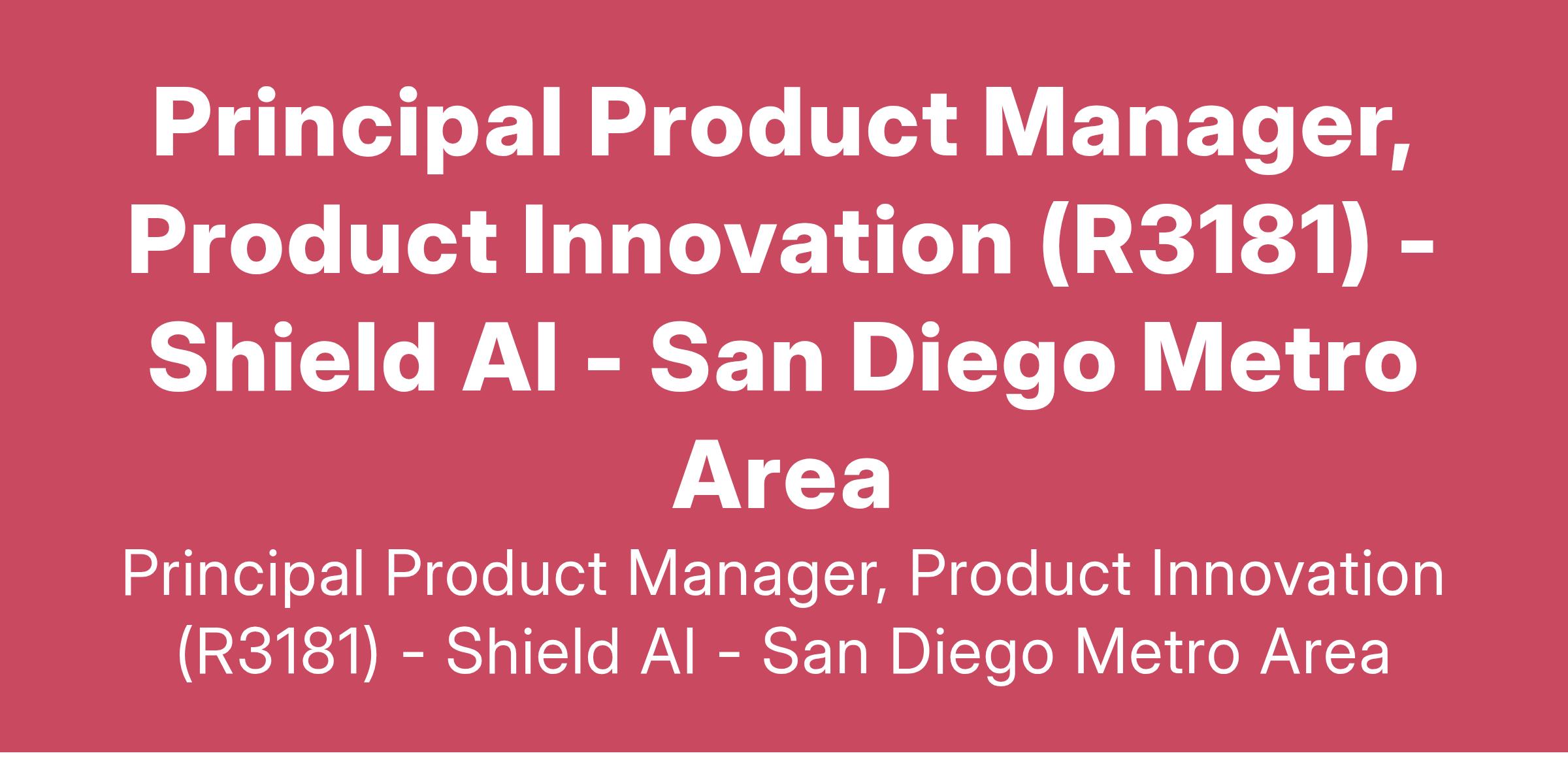 Principal Product Manager, Product Innovation (R3181) - Shield AI - San Diego Metro Area