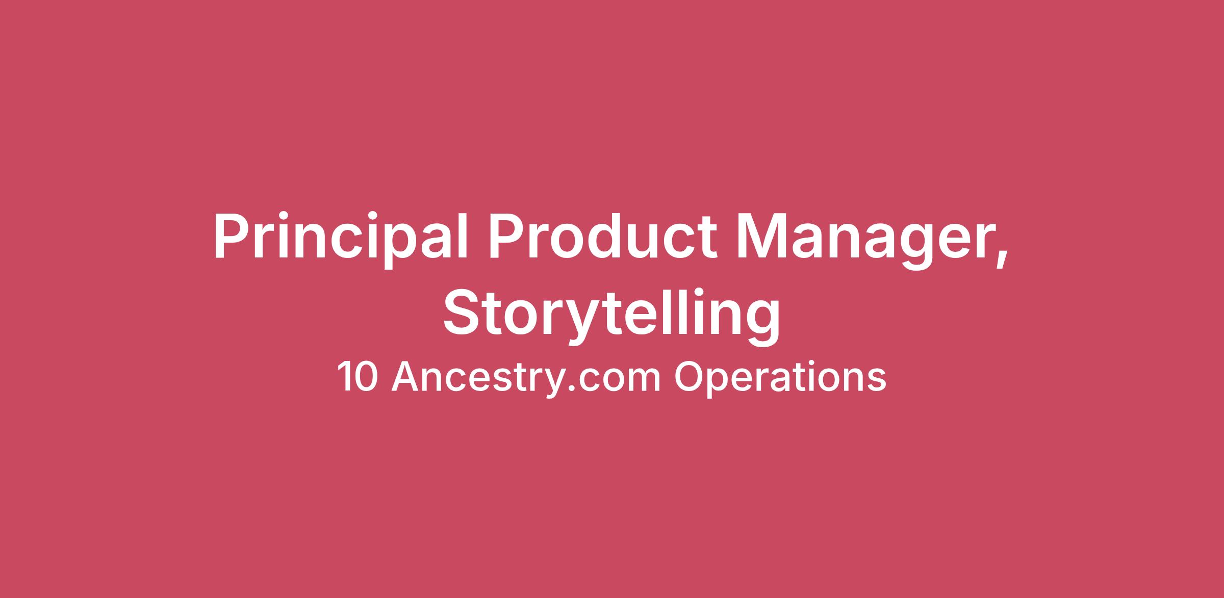 About Ancestry:When you join Ancestry, you join a human-centered company where every person’s story is important. Ancestry®, the global leader in family history, connects everyone with their past so they can discover, preserve, and share their unique family stories. With our unparalleled collection of more than 65 billion records, over 3.5 million subscribers, and over 27 million people in our growing DNA network, customers can discover their family story and gain a new level of understanding about their lives. Over the past 40 years, we’ve built trusted relationships with millions of people who have chosen us as the platform for discovering, preserving, and sharing the most important information about themselves and their families.We are committed to our location flexible work approach, allowing you to choose to work in the nearest office, from your home, or a hybrid of both (subject to location restrictions and roles that are required to be in the office- see the full list of eligible US locations HERE). We will continue to hire and promote beyond the boundaries of our office locations, to enable broadened possibilities for employee diversity.Together, we work every day to foster a work environment that's inclusive as well as diverse, and where our people can be themselves. Every idea and perspective is valued so that our products and services reflect the global and diverse clients we serve. Ancestry encourages applications from minorities, women, the disabled, protected veterans and all other qualified applicants. Passionate about dedicating your work to enriching people’s lives? Join the curious.As Principal Product Manager for Storytelling, you will own the end-to-end product vision and strategy for storytelling at Ancestry. You will operate across Family History, DNA, and Preservation surfaces to create cohesive, story-first experiences that help customers connect insights over time and across artifacts.You will work closely with senior partners in Design, Engineering, Data Science, and Content, and influence multiple teams without direct authority. Your work will establish durable product foundations and guide teams toward a shared north star for storytelling over the next several years.What You’ll DoPartner with cross-functional teams, including Design, Engineering, Data Science, and Content, to set and execute the multi-year vision for storytelling at Ancestry.Translate the product vision into a clear strategy and sequenced roadmap that balances near-term wins with long-term platform investments.Define what “great storytelling” means in product terms and tackle highly ambiguous customer problems by reframing challenges and proposing innovative solutions.Identify gaps or breakdowns in existing product constructs (trees, records, memories) and propose new models to better serve storytelling needs.Make principled tradeoffs when data is incomplete, priorities compete, or cross-org dependencies arise.Partner with Data Science and Engineering to shape AI-assisted storytelling experiences that are transparent, evidence-based, and customer-trust focused.Influence multiple product teams and senior stakeholders to align around shared storytelling outcomes.Partner with Design and Research to ensure experiences are intuitive, emotional, and grounded in real customer needs.Define, track, and communicate success metrics tied to customer value.Who You Are10+ years of product management experience, with demonstrated success operating as a senior IC on complex, cross-cutting initiatives.Proven ability to set product direction and drive outcomes across multiple teams without direct authority.Exceptional product judgment — able to zoom from abstract vision to concrete execution details.Deeply focused on customers, using both qualitative insight and quantitative signals to guide decisions.Strong communicator and storyteller who can bring clarity to ambiguity and align diverse stakeholders.Comfortable being accountable for outcomes that unfold over multiple quarters or years.Helping people discover their story is at the heart of ours. Ancestry is the largest provider of family history and personal DNA testing, harnessing a powerful combination of information, science and technology to help people discover their family history and stories that were never possible before. Ancestry’s suite of products includes: AncestryDNA, AncestryProGenealogists, Fold3, Newspapers.com, Find a Grave, Archives.com, and Rootsweb. We offer excellent benefits and a competitive compensation package. For additional information, regarding our benefits and career information, please visit our website at http://ancestry.com/careersAs a signatory of the ParityPledge in Support of Women and the ParityPledge in Support of People of Color, Ancestry values pay transparency and pay equity. We are pleased to share the base salary range for this position: $160,110 - $266,880 with eligibility for bonus, equity and comprehensive benefits including health, dental and vision. The actual salary will vary by geographic region and job experience. We will share detailed compensation data for a specific location during the recruiting process. Read more about our benefits HERE.*Note: Disclosure as required by sb19-085(8-5-20) and sb1162(1-1-23)Additional Information:Ancestry is an Equal Opportunity Employer that makes employment decisions without regard to race, color, religious creed, national origin, ancestry, sex, pregnancy, sexual orientation, gender, gender identity, gender expression, age, mental or physical disability, medical condition, military or veteran status, citizenship, marital status, genetic information, or any other characteristic protected by applicable law. In addition, Ancestry will provide reasonable accommodations for qualified individuals with disabilities.All job offers are contingent on a background check screen that complies with applicable law. For candidates who live in San Francisco, CA, pursuant t